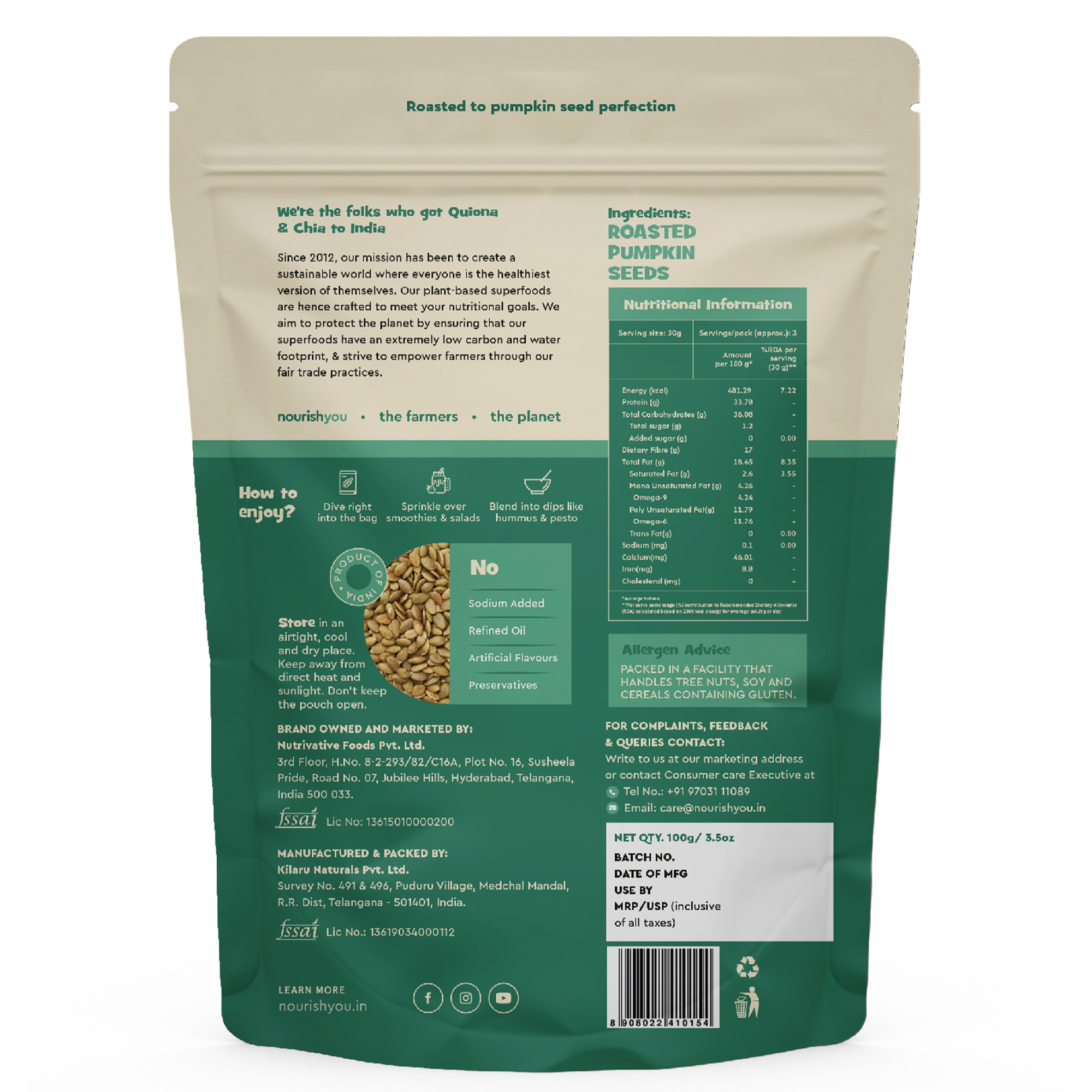 nourish you organic roasted pumpkin seeds