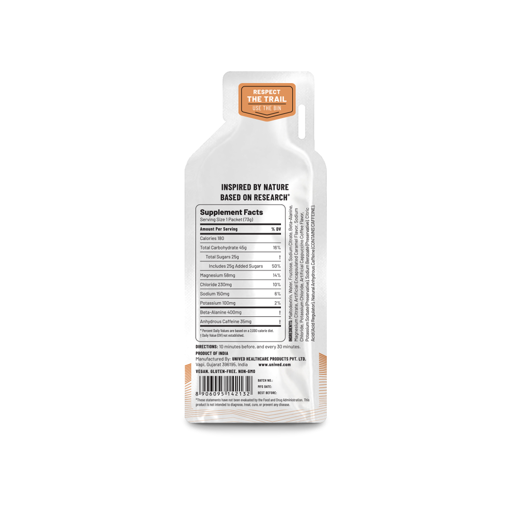 Unived Elite Gel 180 is a water based energy gel made for athletes Each sachet gives 180 calories and 45g of carbohydrates providing quick and steady energy during sports It is light easy to drink and does not cause stomach problems With added electrolytes and caffeine it helps you perform better recover faster and stay strong in long runs cycling and endurance events