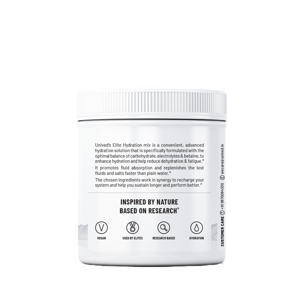 Unived Elite Hydration Mix 16 servings is a hydration drink with essential electrolytes It keeps you hydrated faster than plain water and helps prevent tiredness during sports or daily activity It has higher electrolytes and fewer carbs making it light and safe to drink With no added sweetener and low calories it is easy on the stomach and supports long workouts running and cycling