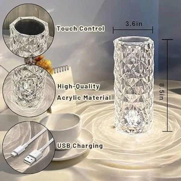 Crystal Diamond Table Lamp Dimmable Touch And Remote Control