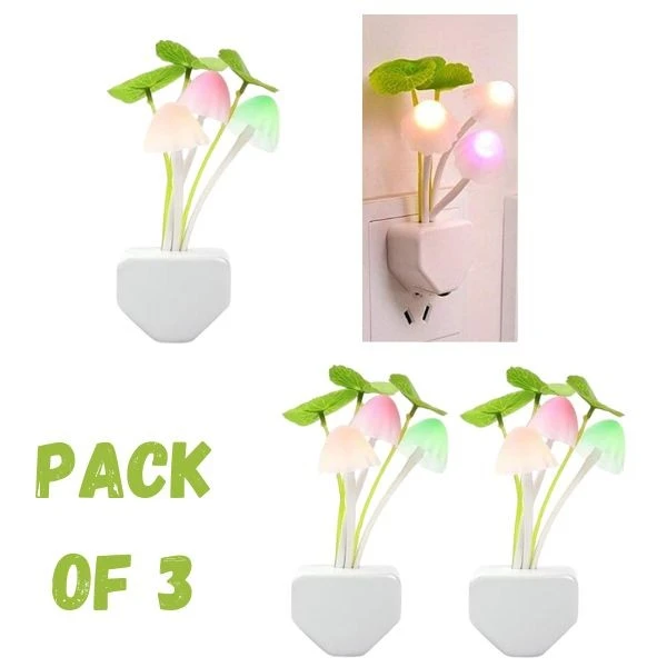 Mushroom Shape Magic Night Light Lamp Smart Sensor Auto On Off pack of 3