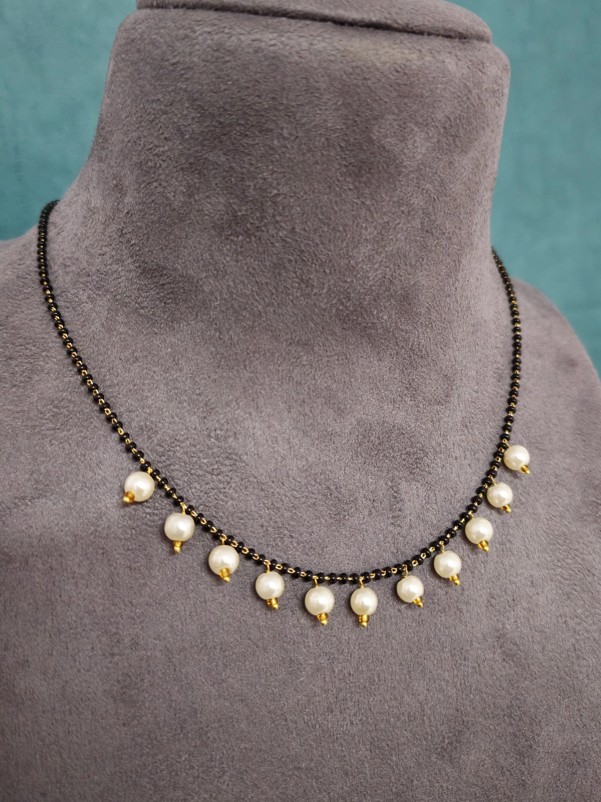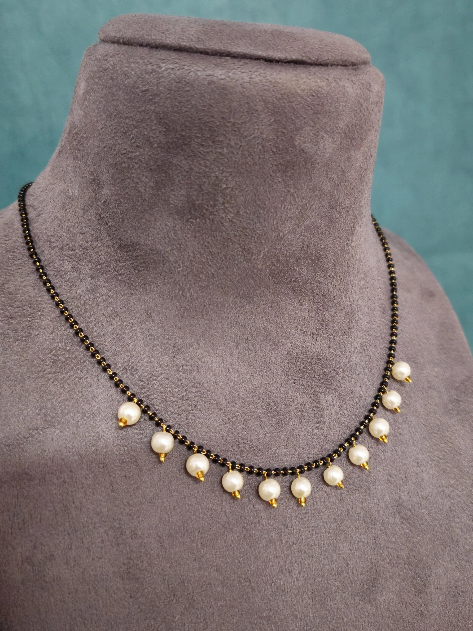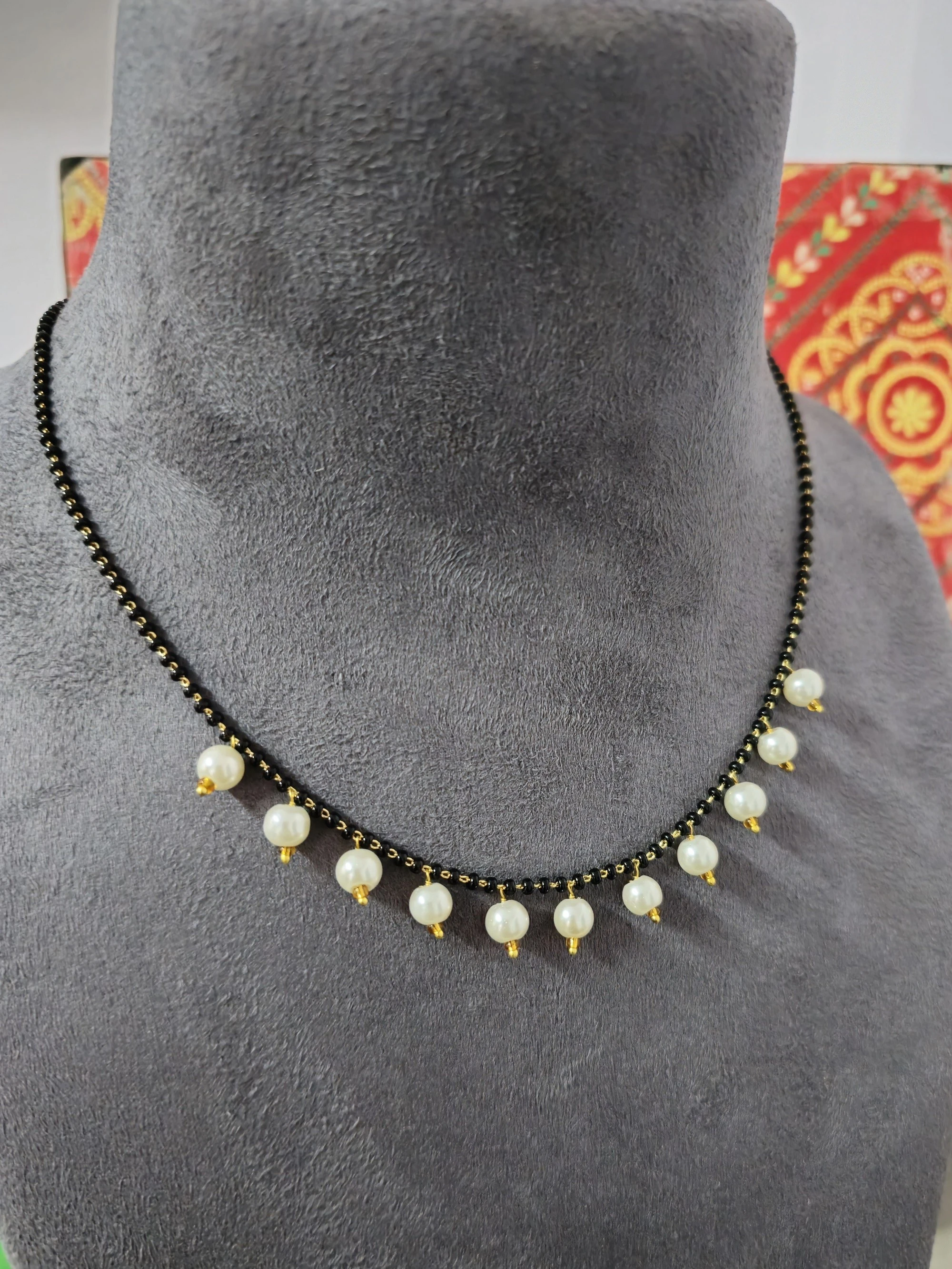 Here are the specifications you might expect for a gold plated pearl Tanmaniya mangalsutra: