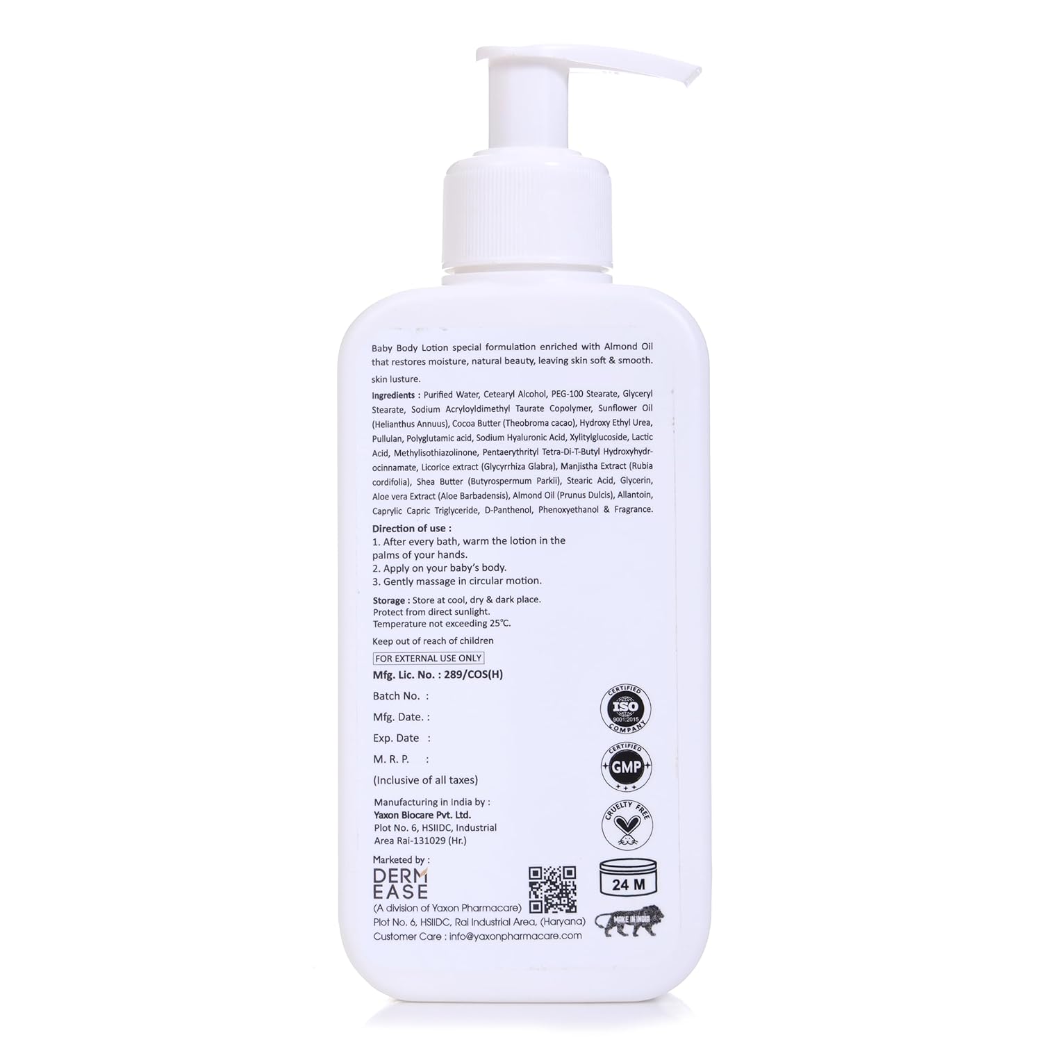 Dermease Baby Lotion with Aloe Cucumber Papaya gently cares for your baby s delicate skin It hydrates soothes and protects without harshness leaving skin soft and calm This mild formula uses Aloe Vera Extract Cucumber Extract Papaya Extract and Allantoin to nourish calm irritation and maintain natural moisture ideal for everyday baby skincare
