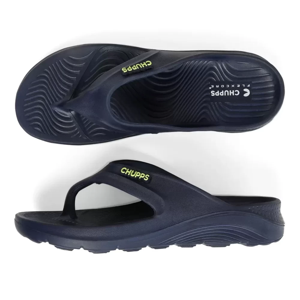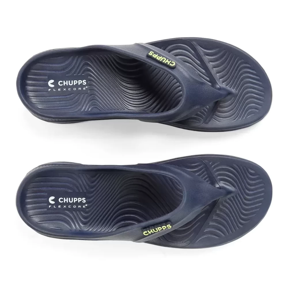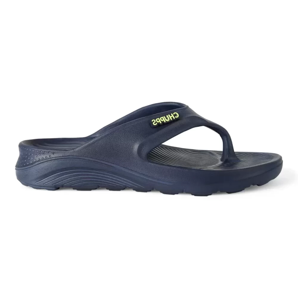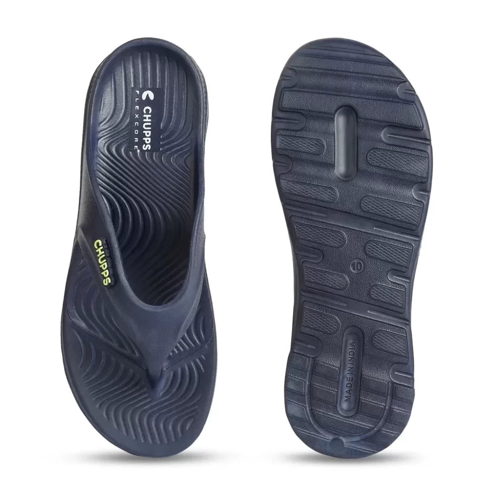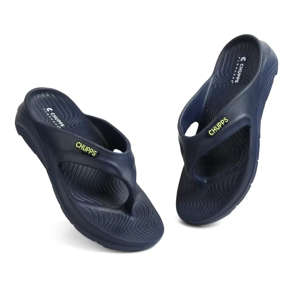 - The Chupps WYLD V-Strap Men's Flipflop Slippers will improve your shoe game thanks to their iconic logo, unique side design, blue sole, and drab straps. For a minimalist look, try the sleek plain blue sole Flip Flops, perfect for any occasion.