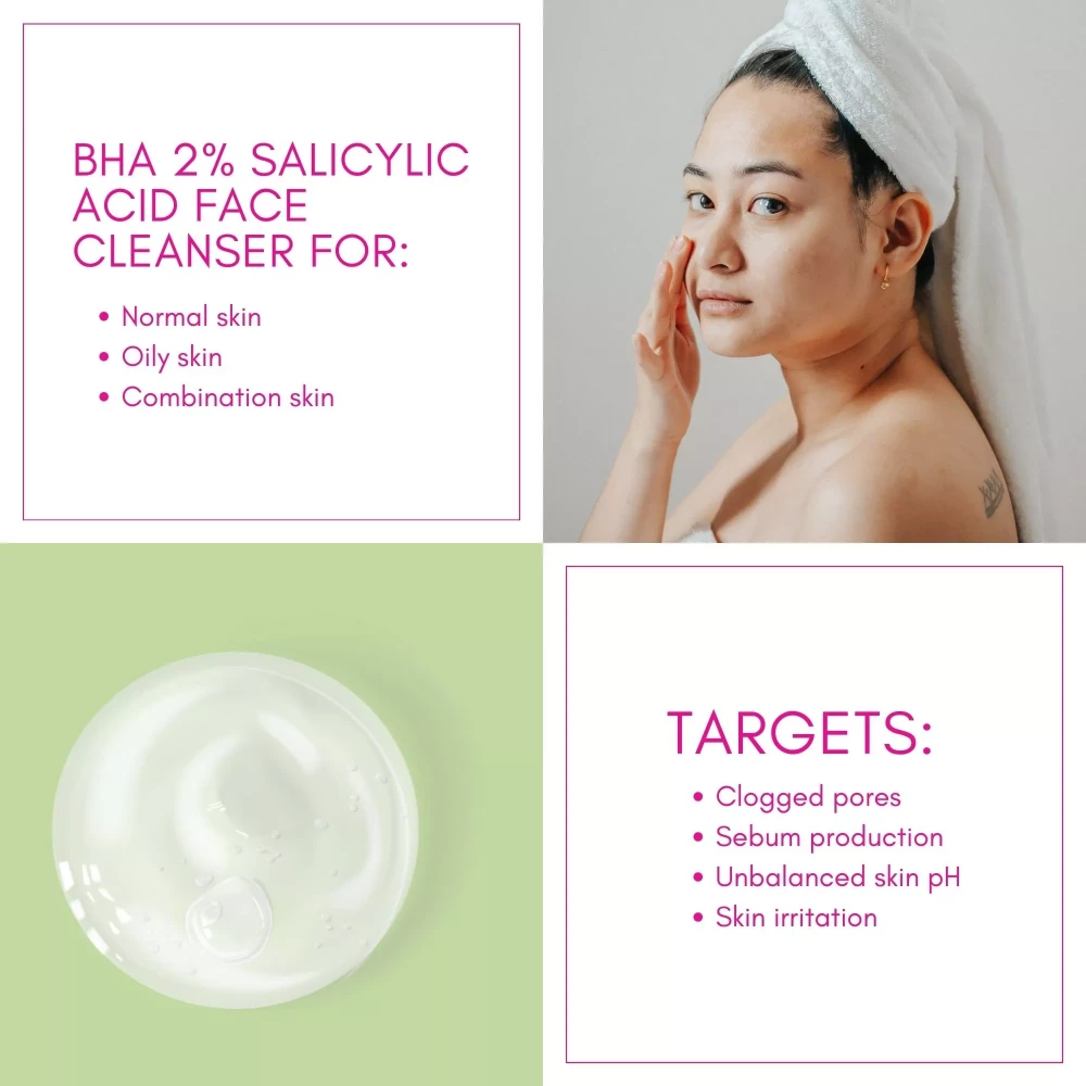 HYDRATE, BRIGHTEN & SMOOTH FINE LINES: Our unique, BHA2% face cleanser is gentle enough for daily use on all skin types.