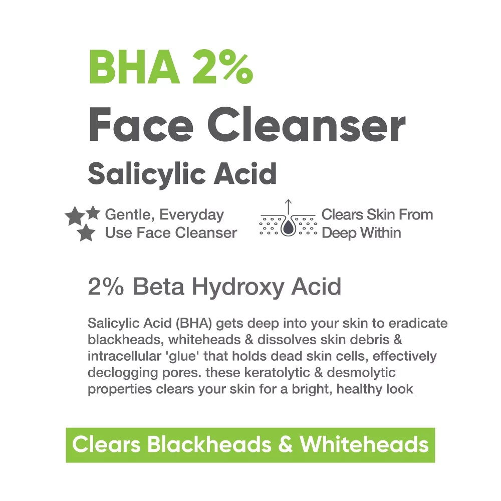 CLEAN & TRANSPARENT BEAUTY: This face wash is (i) Fragrance-free (ii) Silicones-free (iii) Sulfates-free (iv) Parabens-free (v) Essential Oils-free and (vi) Dyes-free (vii) Mild Cleanser. Also, it is non-comedogenic, anti-bacterial, and hypoallergenic. Formulated at pH balanced with high purity grade of Salicylic Acid