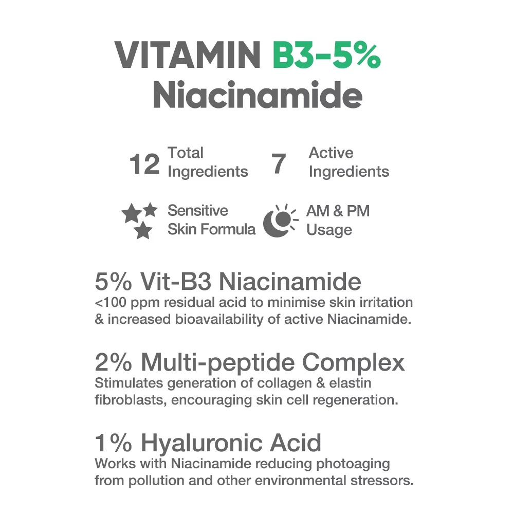 FOR ALL SKIN TYPES: Niacinamide is scientifically proven safe for all skin types and that is why it is becoming very popular. At 5% Concentration this serum suits all skin types even sensitive or dry skin types."