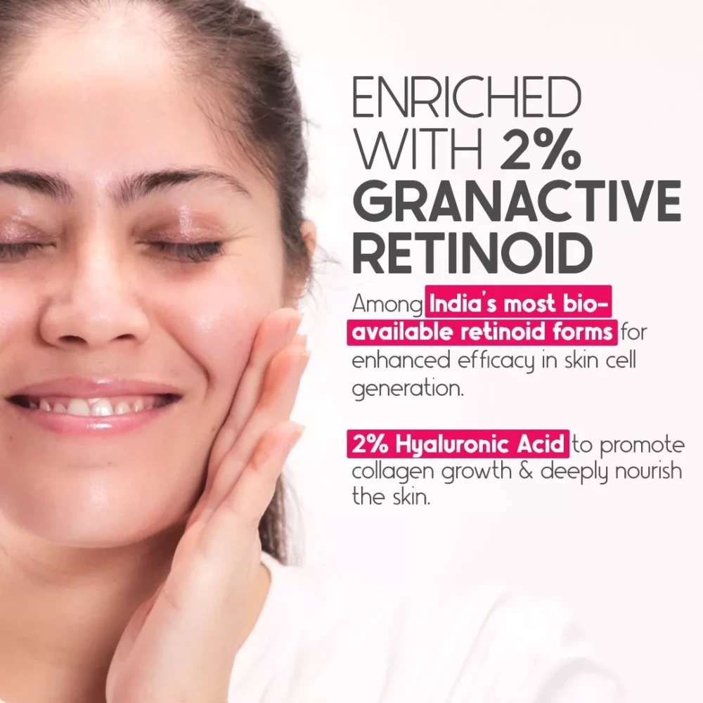 ACE ANTI AGING SERUM: 2% Granactive Retinoid serum for face increases the cell turnover rate & slows down the skin’s aging process thus producing fresh skin faster, to keep various signs of aging at bay.