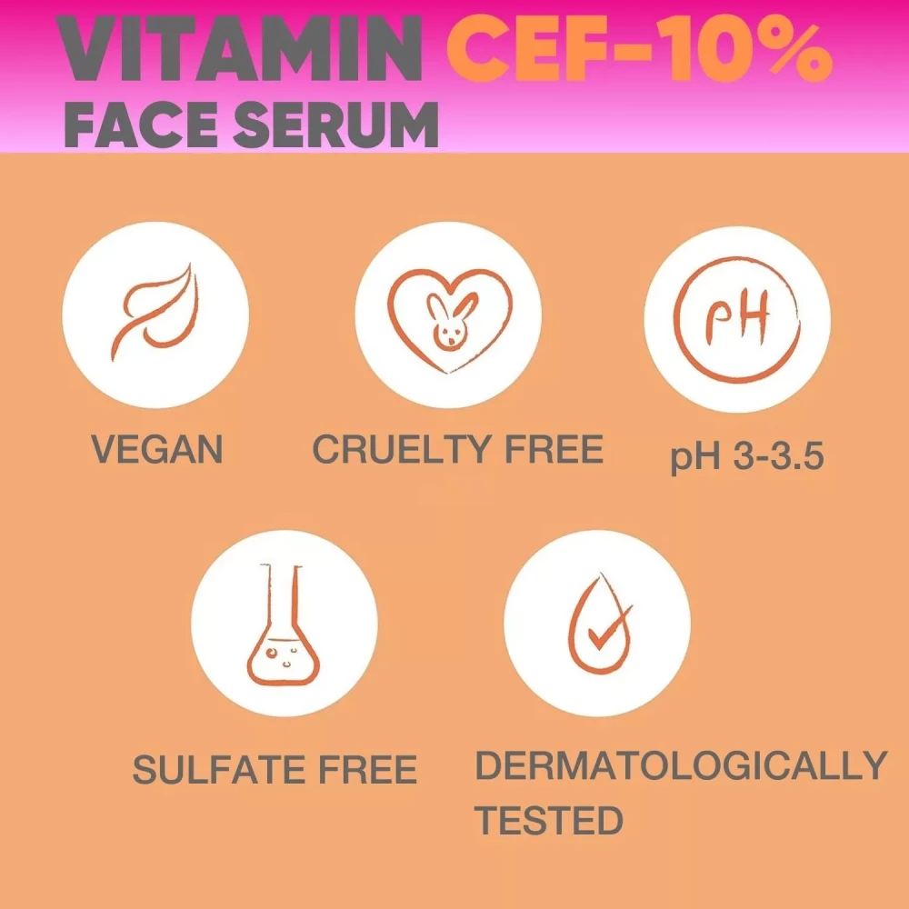 Package Content: 1 Vitamin CEF-10% Face Serum; Quantity: 30ml; Item Form: Serum
