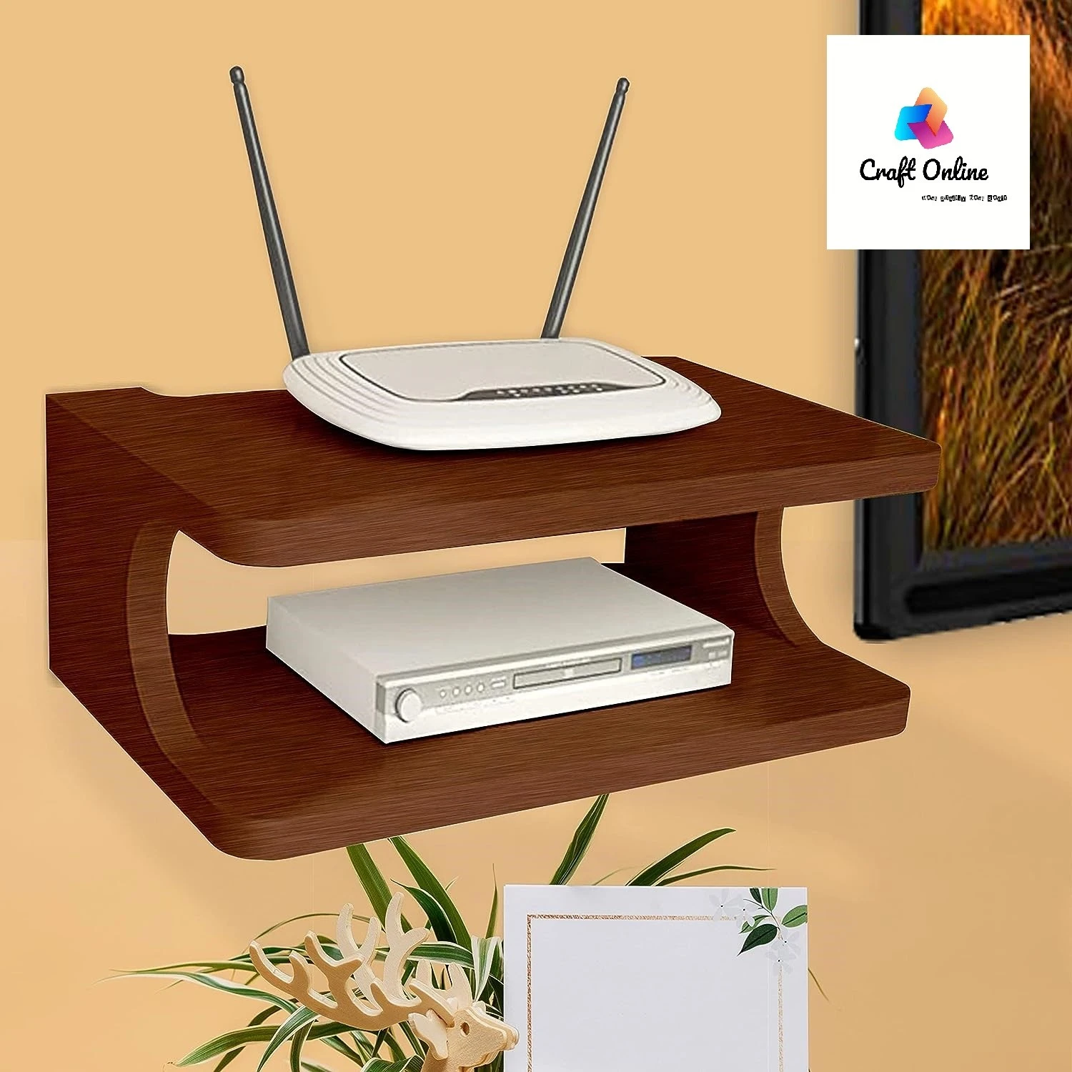 CraftOnline Set Top Box Stand Wall Shelves and WiFi Modem Rack for Living Room Design Like OD (Brown)