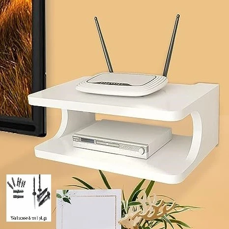 Set Top Box Stand Wall Shelves & WiFi Modem Rack for Living Room Design Like OD (White)