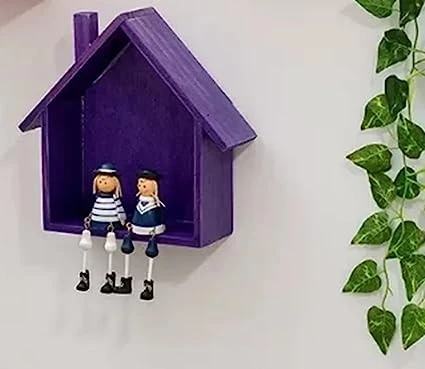 CraftOnline Wall Hanging Shelves/Wooden Wall Shelves/Rack and Shelf/Display Shelf Hut Shape (Purple)