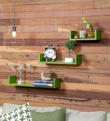 CraftOnline Wooden Handcrafted Wall Shelf Beautiful Floating Wall Racks Shelves Living & Bed Room Decor U Shaped Set of 3 (Green)