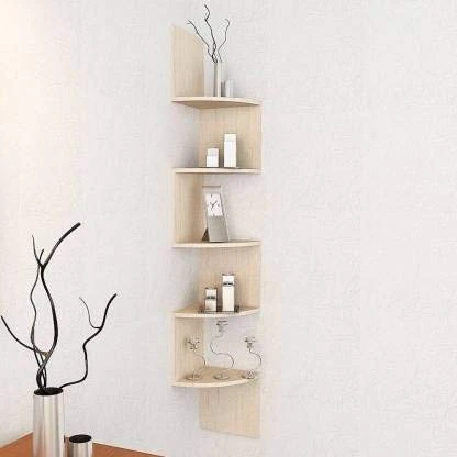 CraftOnline Wooden Laminated finish Fancy Zigzag Wall Mounted Corner Shelf Off white