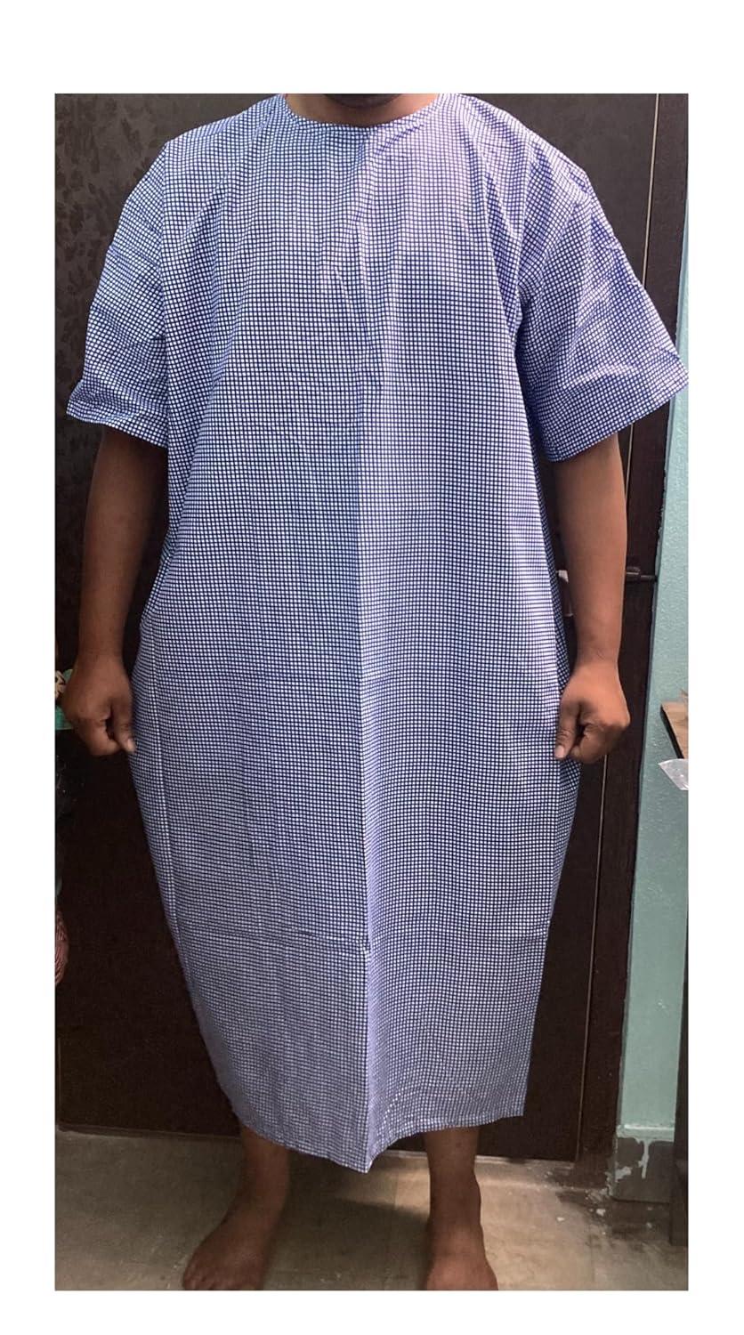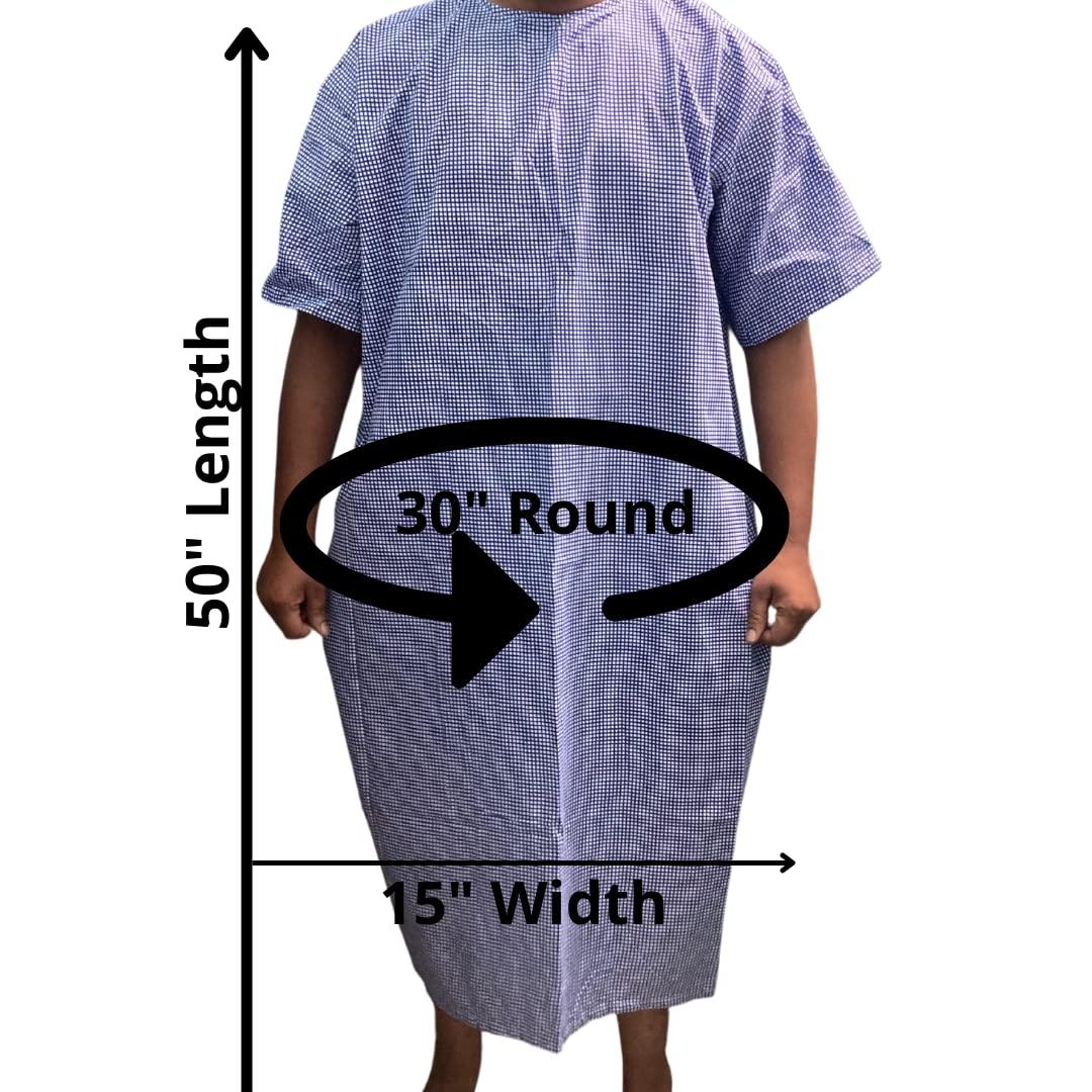 Tan45 Patient Gown For Adult, Hospital Gown, Cotton, 3 Back ties, Patient care (Blue Checks) Universal Size