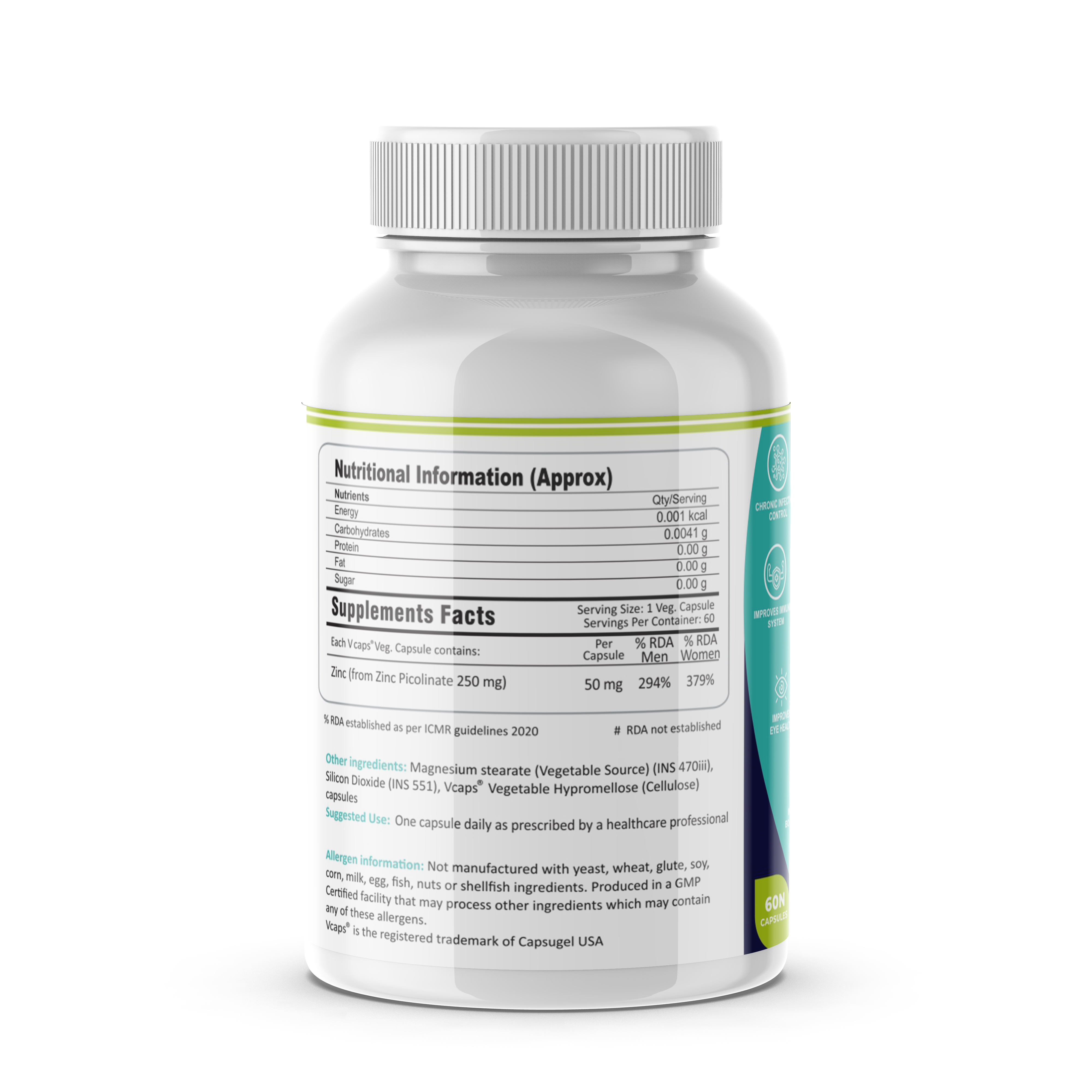 Opti Zinc features zinc picolinate for superior absorption supporting immune health skin repair and cellular function This essential mineral promotes enzymatic reactions and antioxidant defense for overall well being