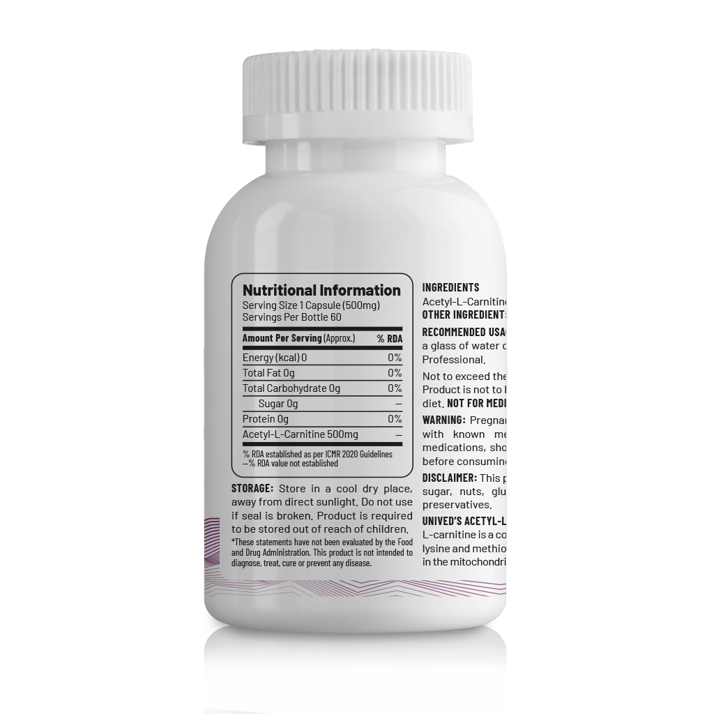 Unived Fat to Energy Support Acetyl L Carnitine is made to help your body use fat as fuel and boost energy levels It supports better exercise performance improves recovery and reduces soreness after activity This supplement also helps the brain stay active improves oxygen use and supports healthy weight management With 60 capsules in one pack it is a simple way to stay fit energized and focused