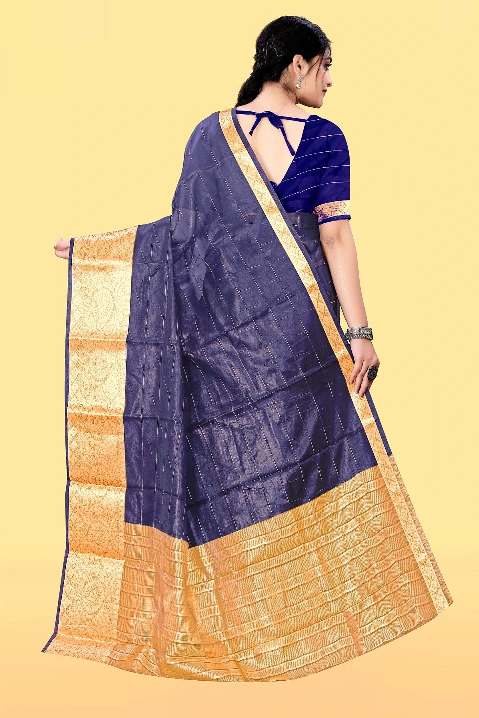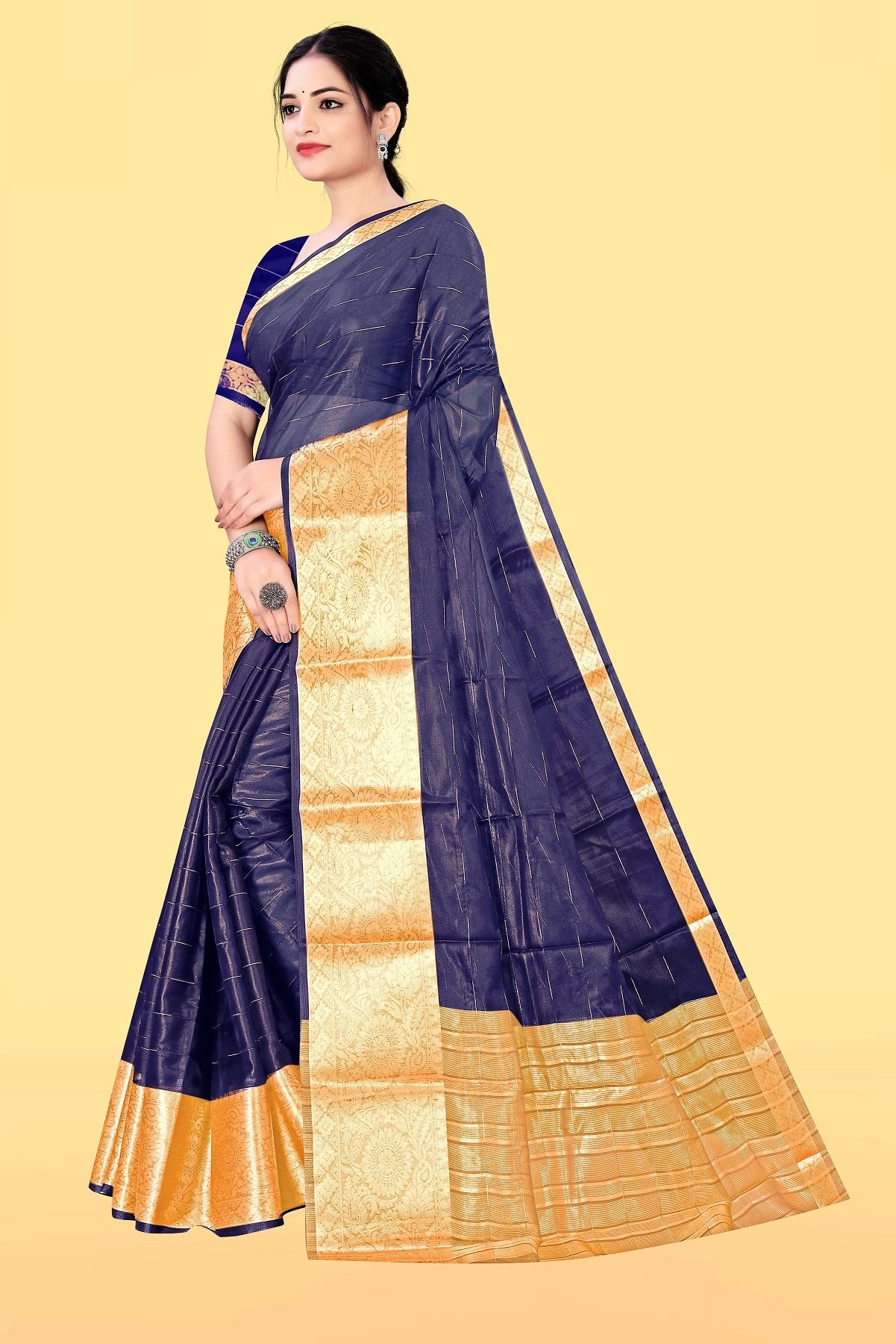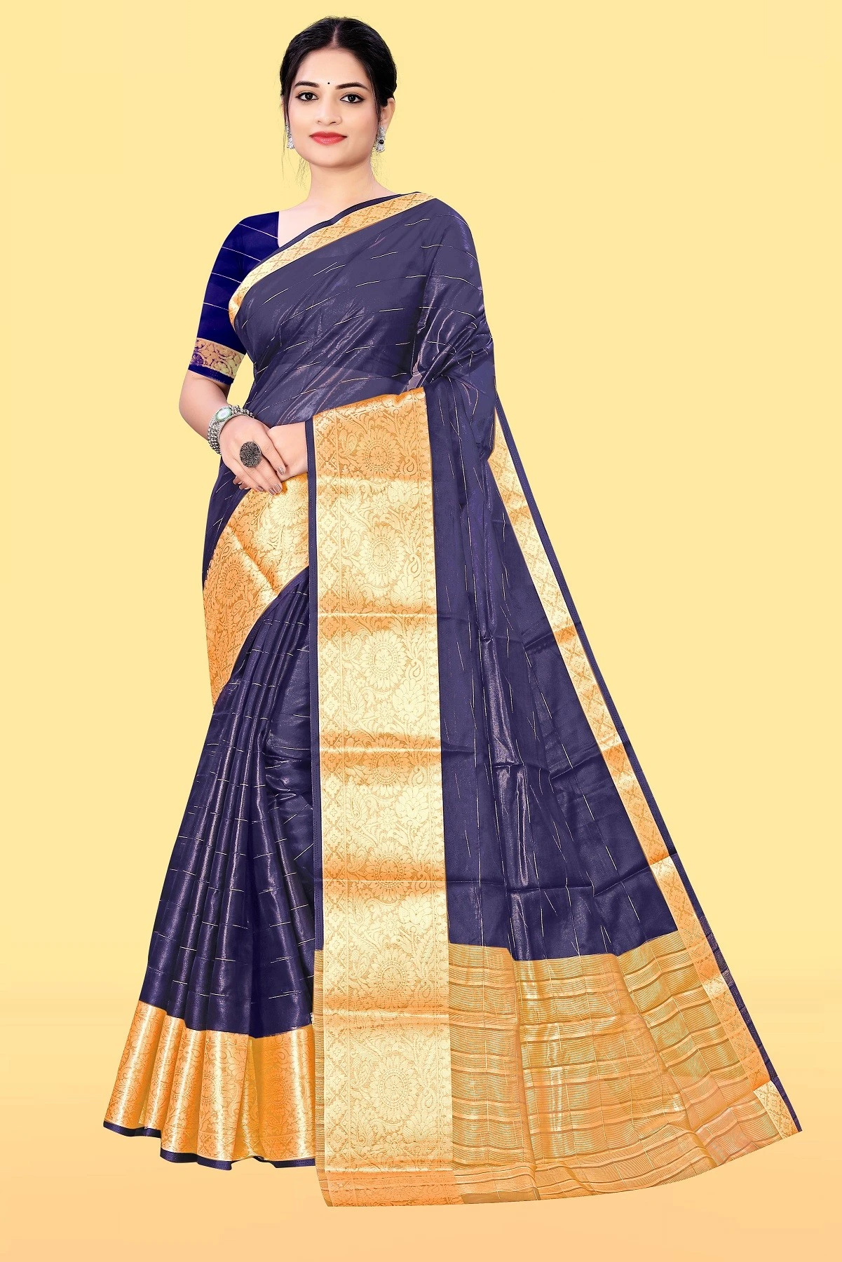The navy blue organza silk saree for women from Amrapali Trends Brand