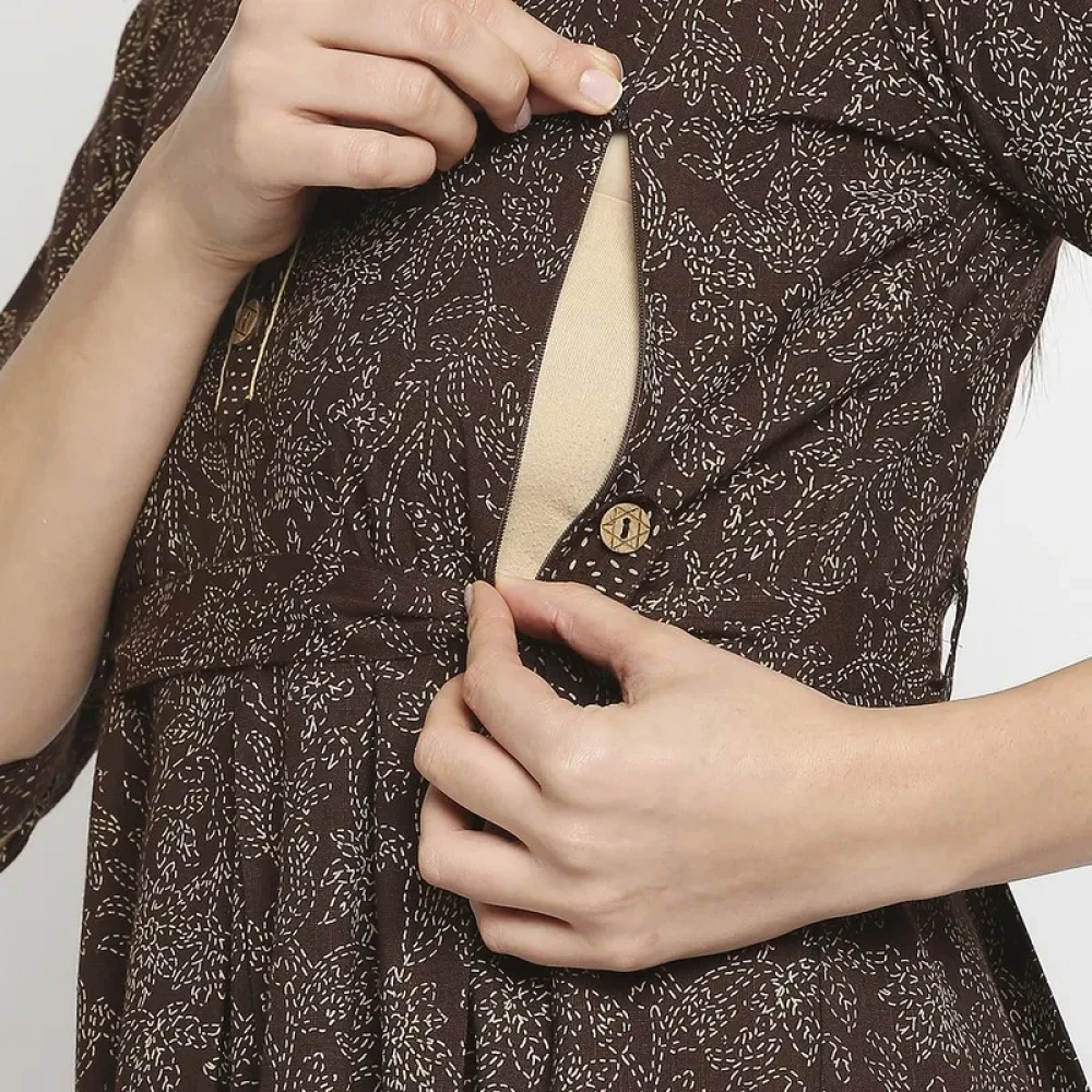 Feeding Topwear For Mothers With Zip: Seamlessly transition from casual outings to formal events with our versatile dress. Whether it's a relaxed day out or a special gathering, our kurtis ensure you look and feel your best, making them essential pieces for your maternity wardrobe. Designed to suit various festivals and celebrations, they offer effortless elegance and comfort for women during pregnancy and beyond, catering to your diverse lifestyle needs.