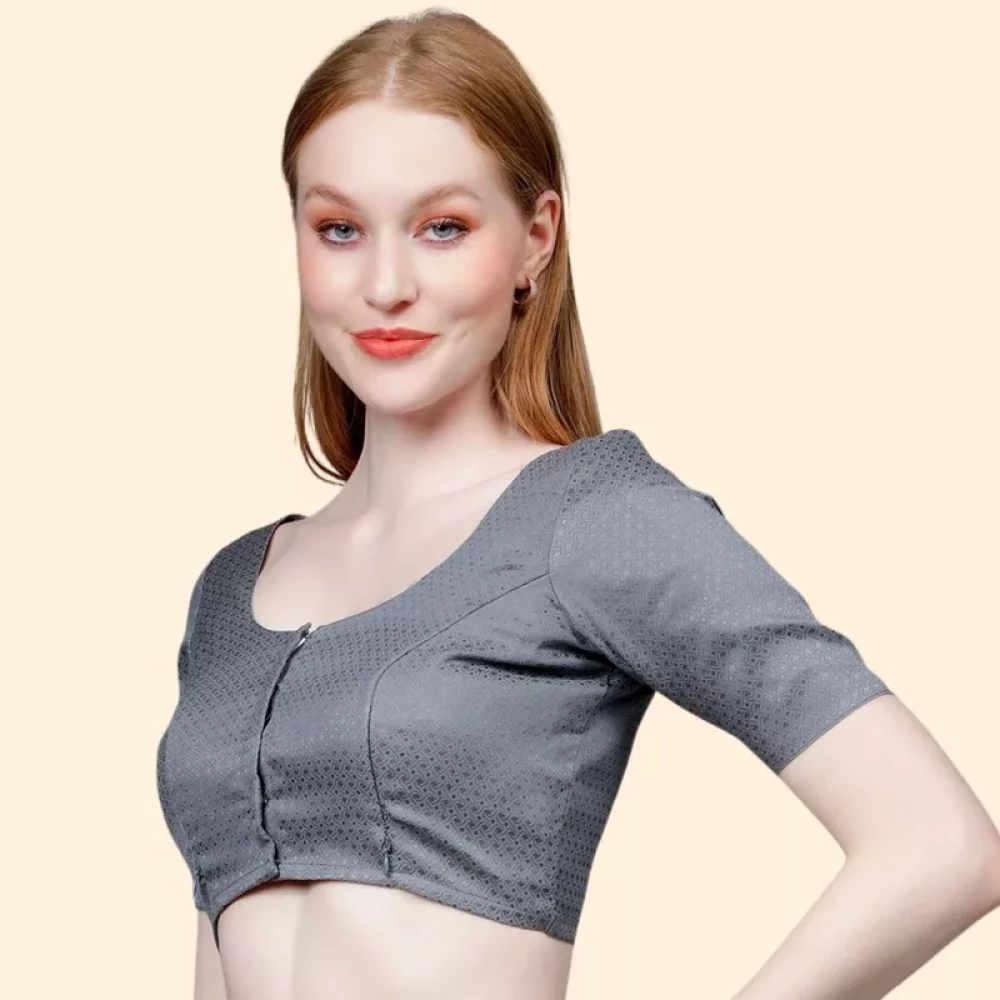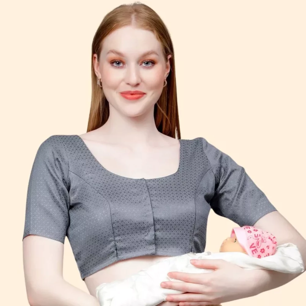 Grey Maternity Saree Blouse For Breastfeeding