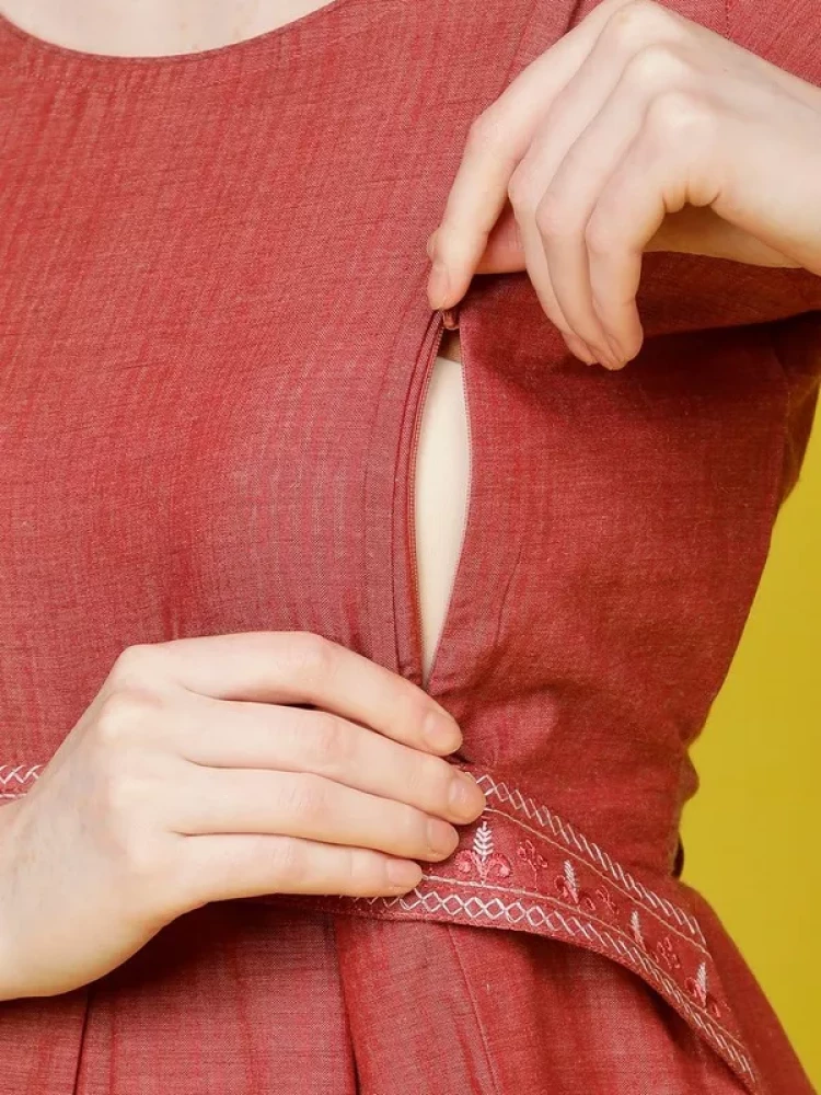 Feeding Topwear For Mothers With Zip: Seamlessly transition from casual outings to formal events with our versatile dress. Whether it's a relaxed day out or a special gathering, our kurtis ensure you look and feel your best, making them essential pieces for your maternity wardrobe. Designed to suit various festivals and celebrations, they offer effortless elegance and comfort for women during pregnancy and beyond, catering to your diverse lifestyle needs.