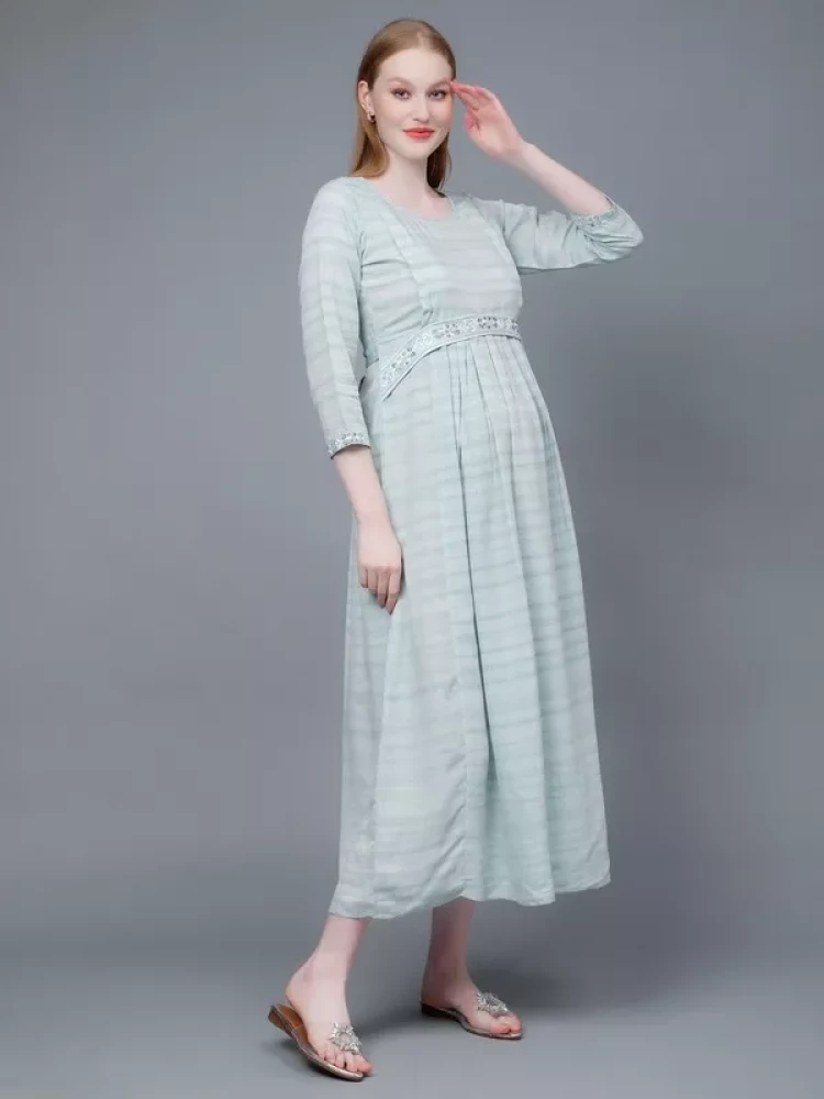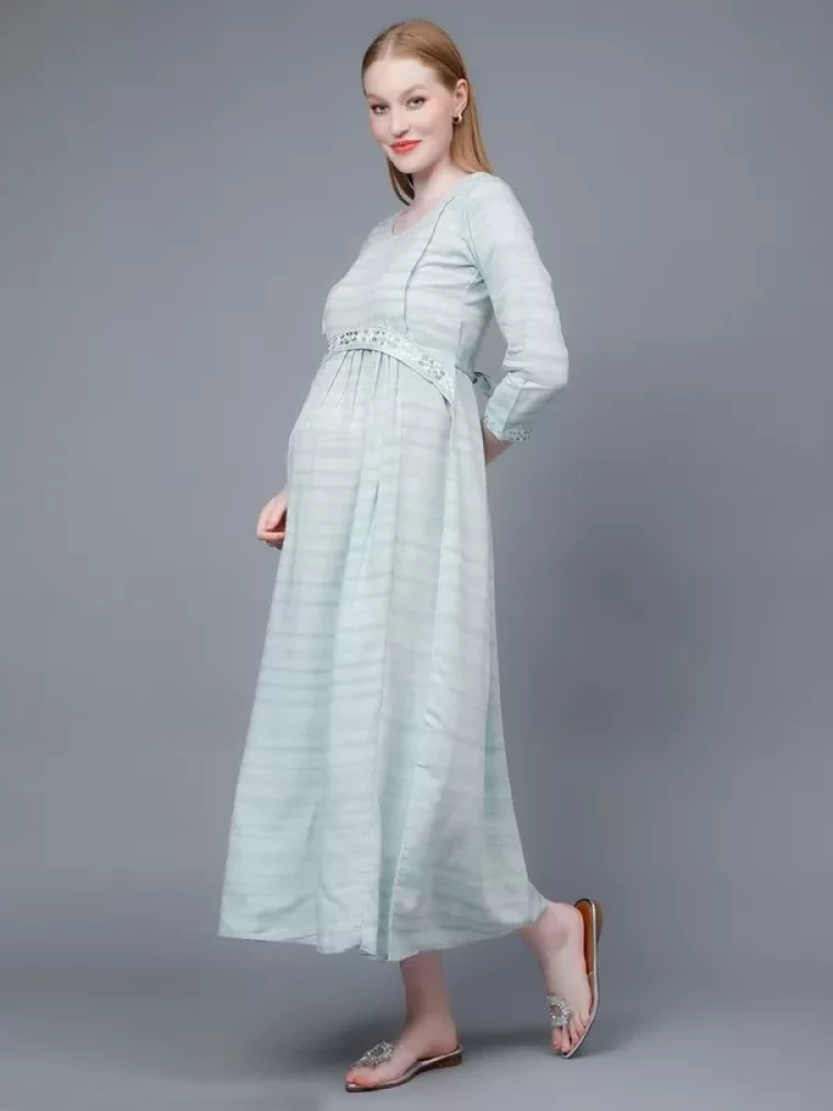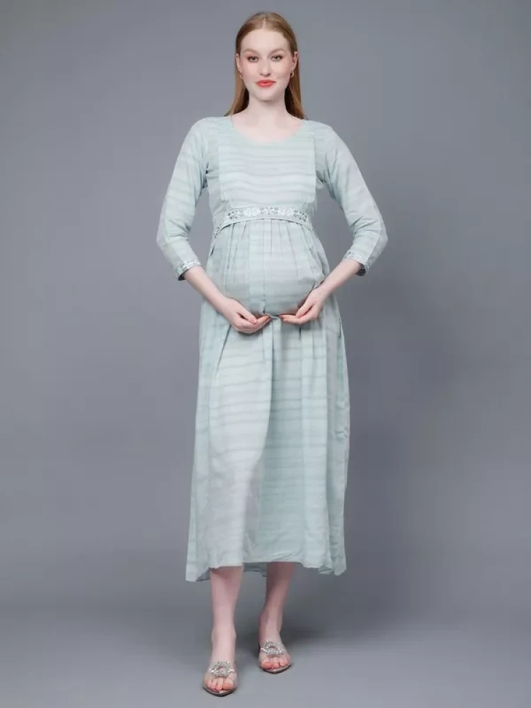 Pregnancy Kurtas For Women: Featuring discreet front-open anti-allergic zippers, our kurtis provide easy access for breastfeeding, blending practicality with style for pre and postpartum wear. These zippers offer quick and discreet nursing opportunities, allowing you to feed your baby comfortably wherever you go. Additionally, an attached belt allows for effortless adjustment, ensuring optimal comfort as your body changes throughout pregnancy and beyond.