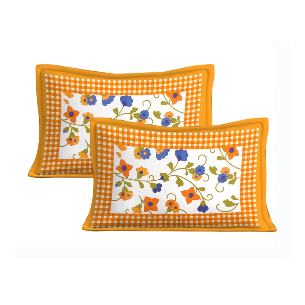 Jaipuri Sanganeri Floral Printed Yellow Flower Double Bedsheet with 2 Pillow Cover