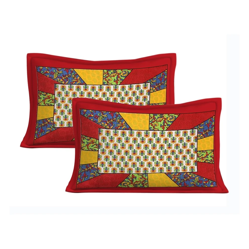 Jaipuri Sanganeri Floral Red Multi Printed Double Bedsheet with 2 Pillow Cover