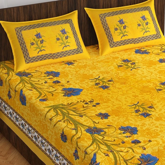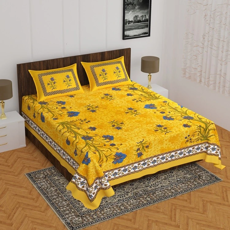 Revamp Your Bedding with Jaipuri Prints: Cotton Double Bed Sheet in Yellow