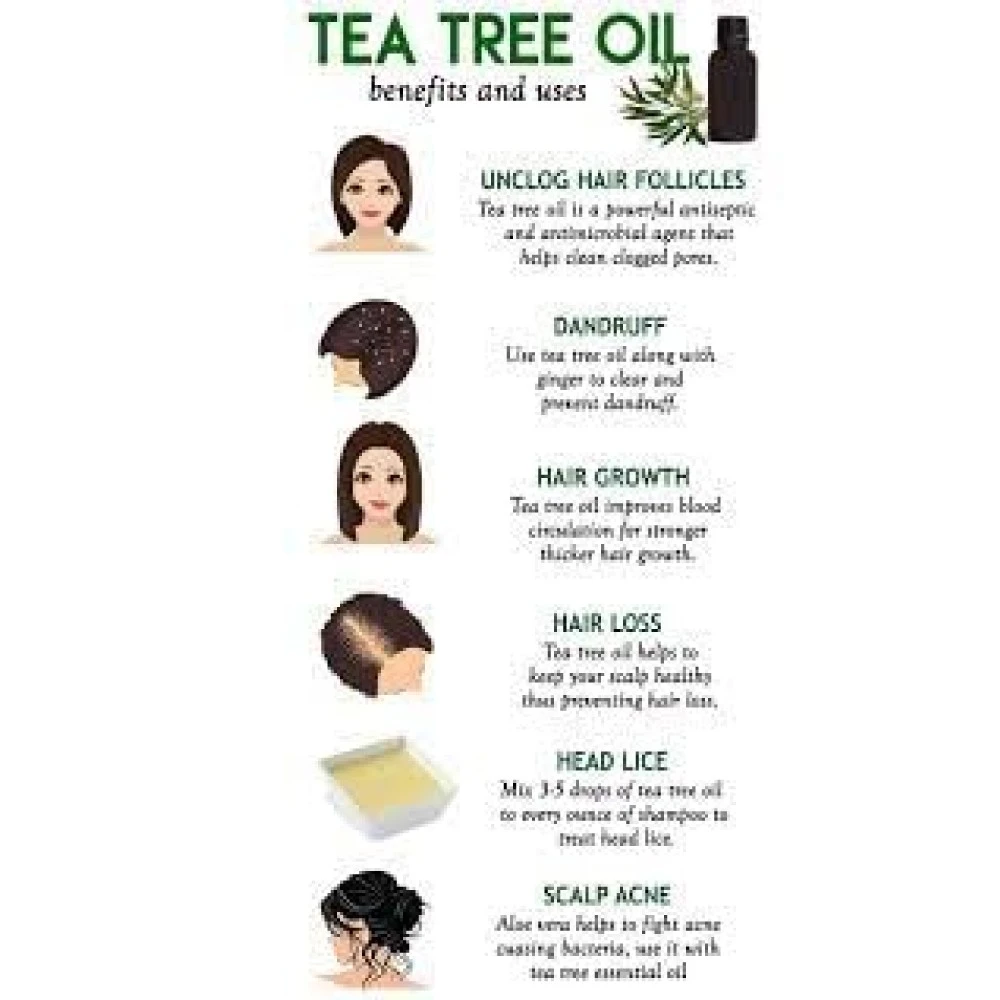 Versatile Skincare: Experience the benefits of tea tree oil beyond just your hair. Its antibacterial and anti-inflammatory properties make it a powerful ingredient for treating acne, soothing irritations, and promoting clear, healthy skin.