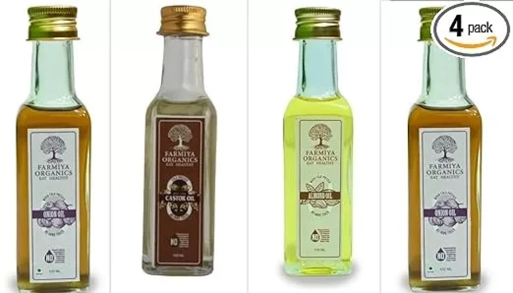 Farmiya Organics and Natural Flaxseed Almond Castor Onion Cold Pressed Carrier Oil 400ml Each of 4