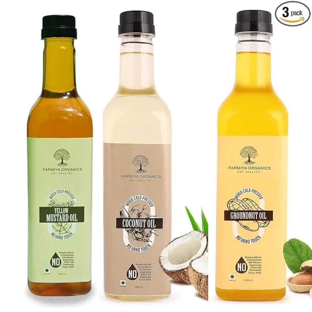 FARMIYA ORGANICS Coconut Oil Mustard Oil and Groundnut Oil Pack of 3 1 Litre each