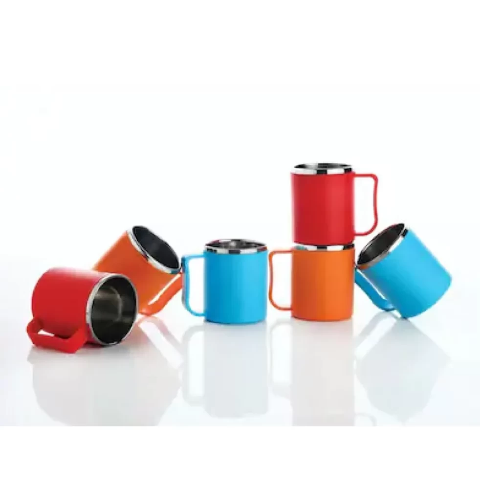 Multicolor Double Wall Insulated Steel Plastic Coffee Mug 200 ml
