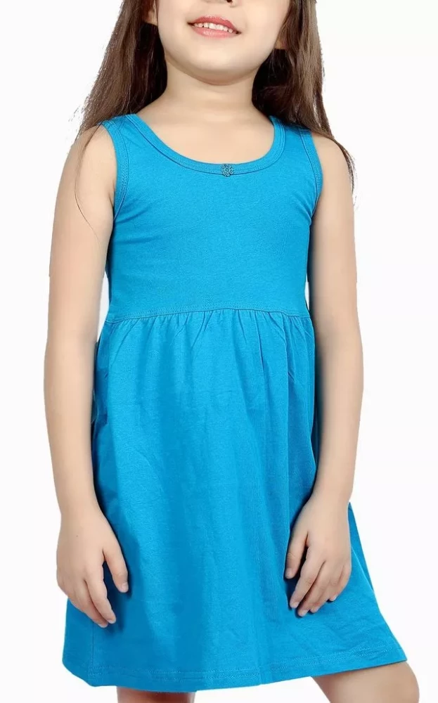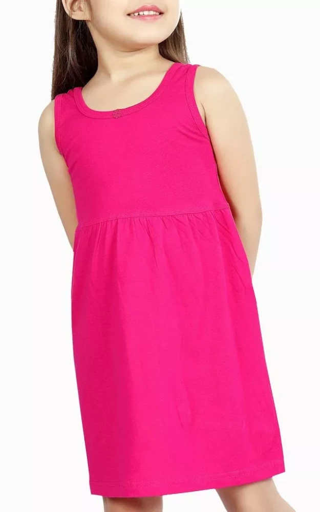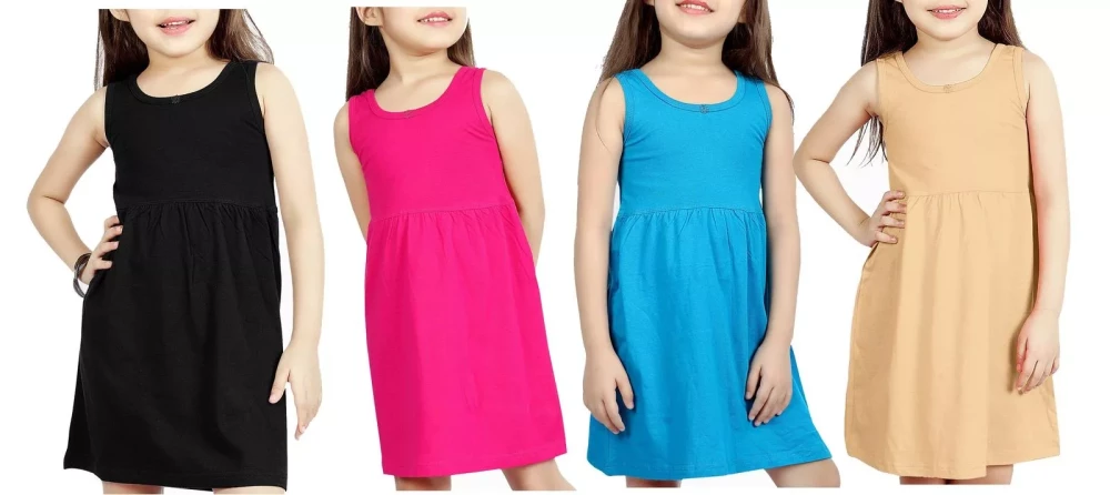 100% comfortable cotton fabric night dress for kids girls. A hassle-free frock style inner petticoat for girls. Broad shoulder panels with a slip on style wear.  Front & back closed neck "