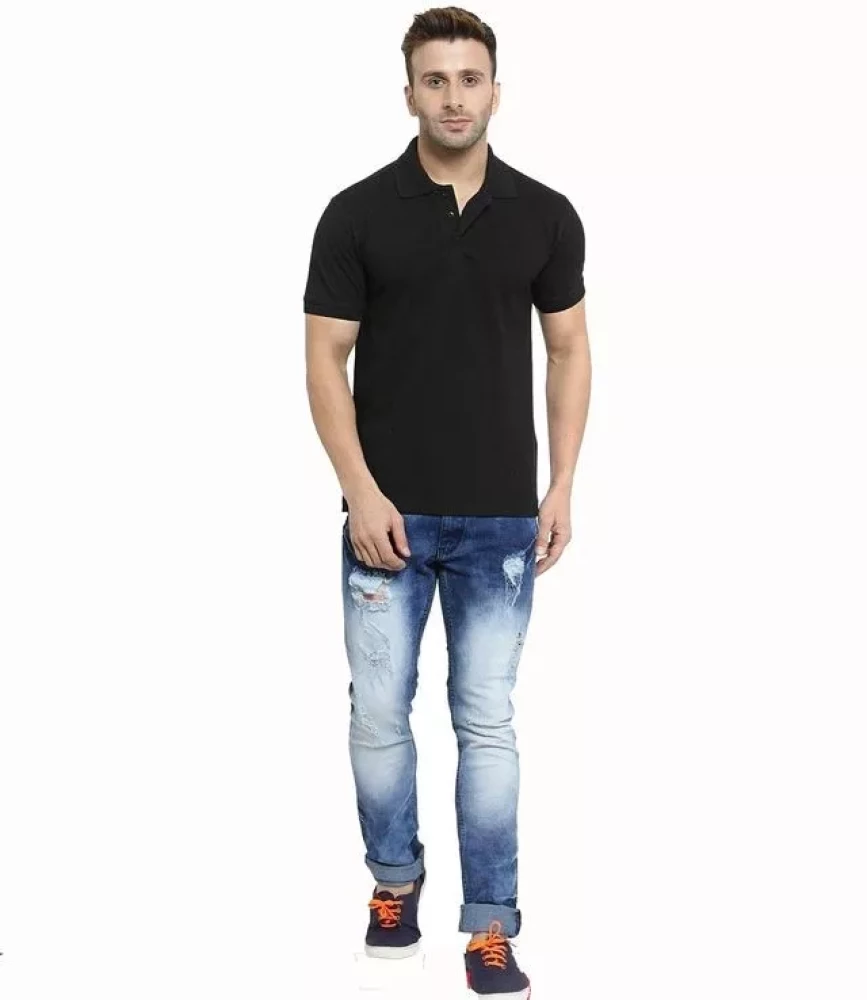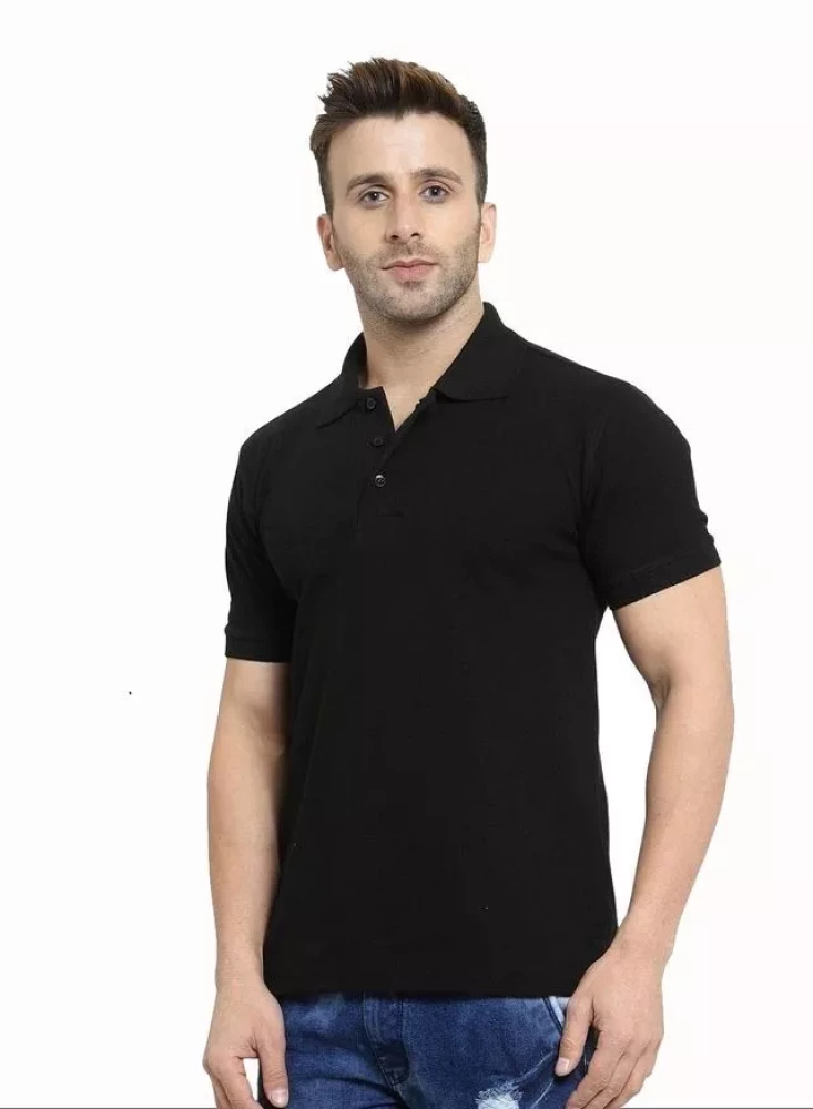 Mens Premium collor Tshirt Plain Black