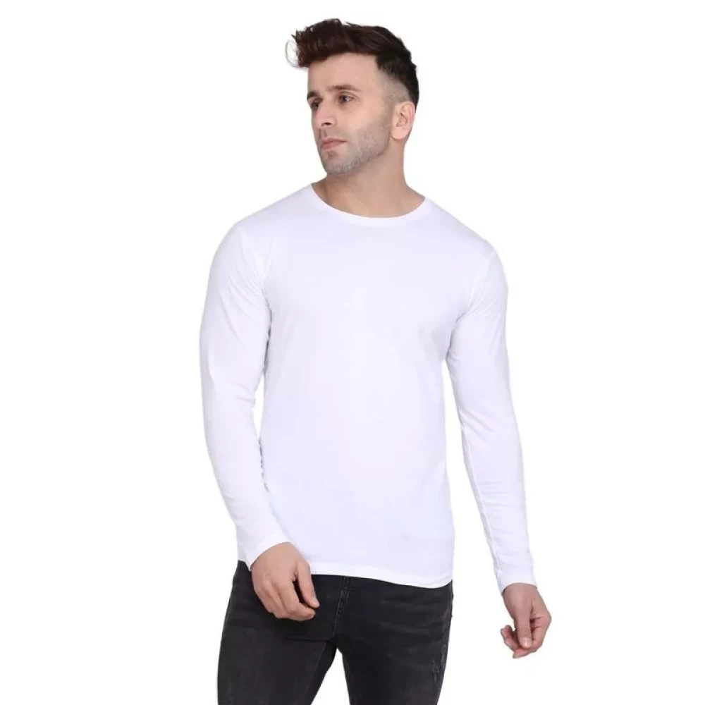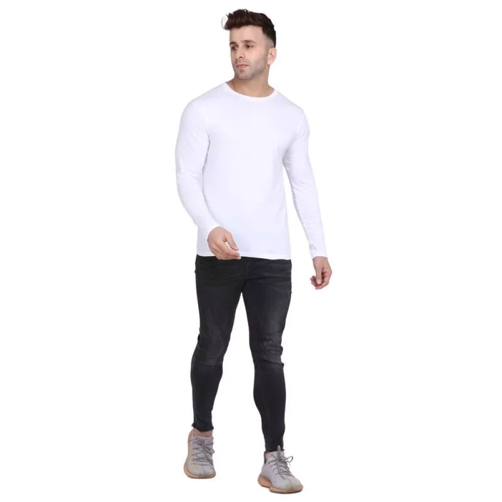 Mens Premium Roundneck Fullsleeve Tshirt Plain White