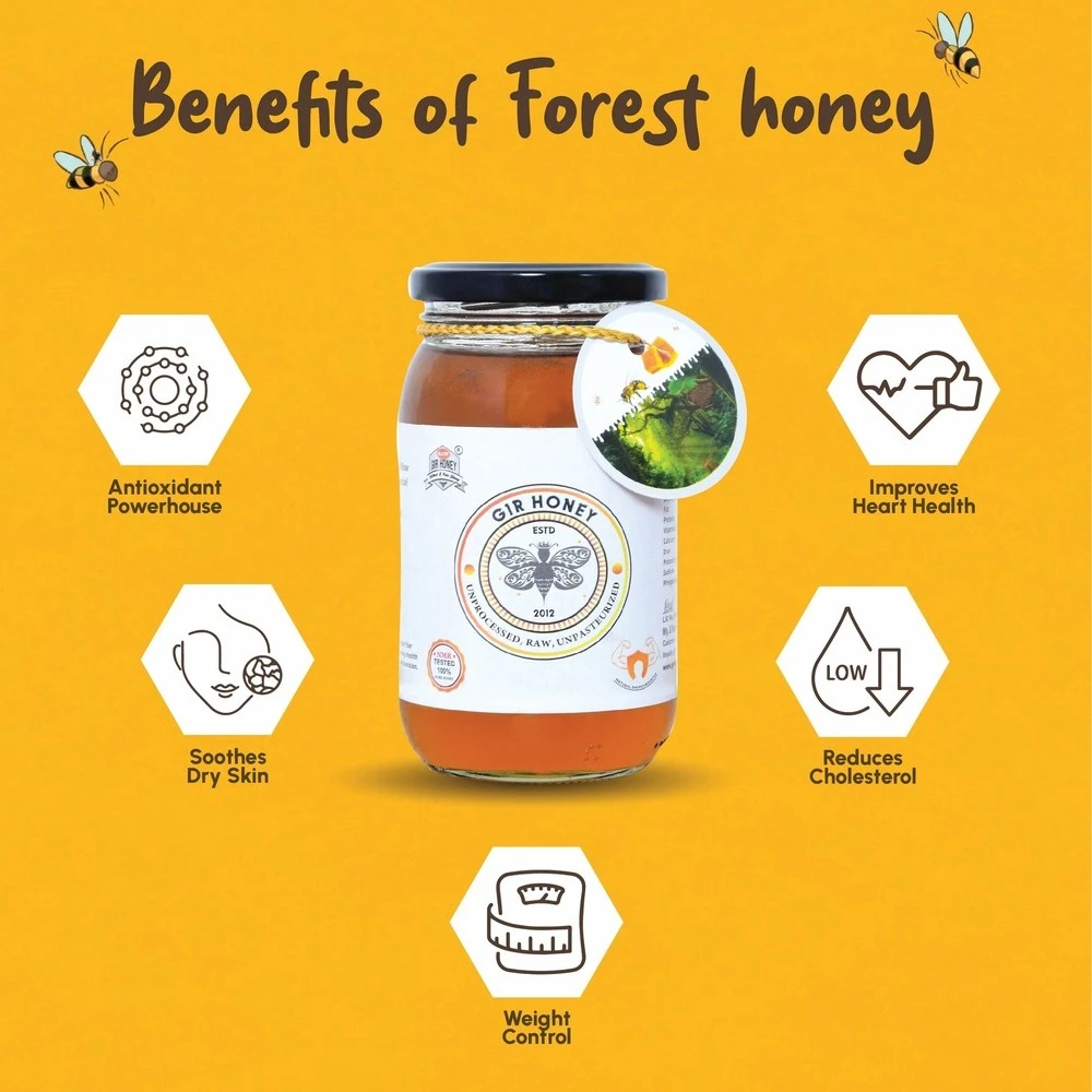With its high antibacterial and hydrating properties, GIR HONEY makes an excellent face pack, leaving your skin refreshed and rejuvenated. Furthermore, it's an age-old Ayurvedic remedy for weight loss, cough, and digestive problems, offering holistic wellness benefits.