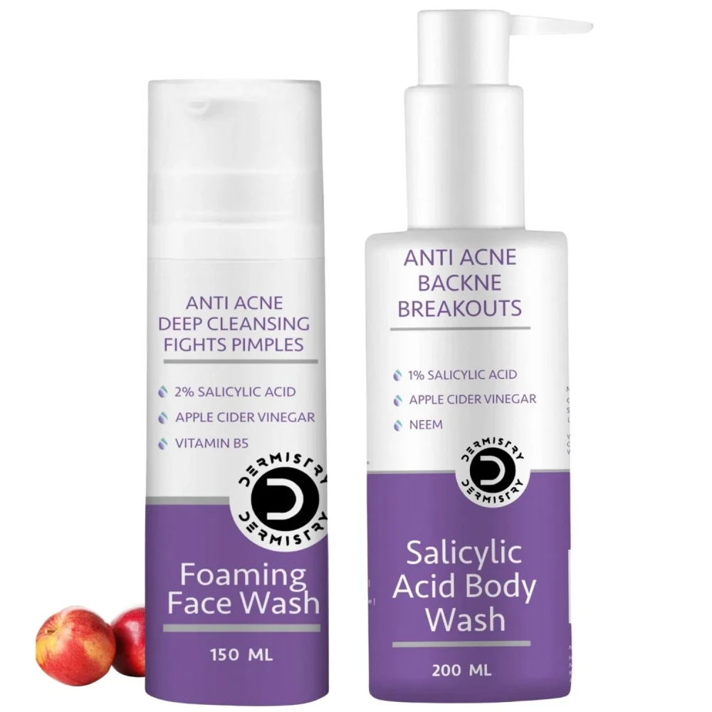 Dermistry Anti Acne Foaming Deep Cleanser Face Wash and Back Acne Body Shower Gel Wash With 2% Salicylic Acid Pack of 2 350 ML