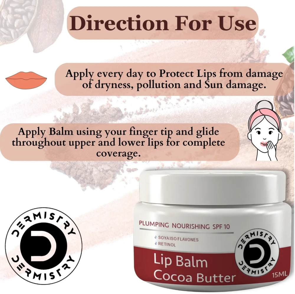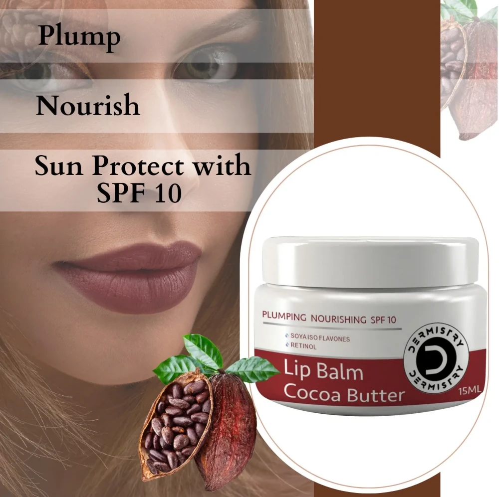 Dermistry Plumping Nourishing SPF 10 for Glossy Tinted Lip Balm Cocoa Butter Men Women 15ml