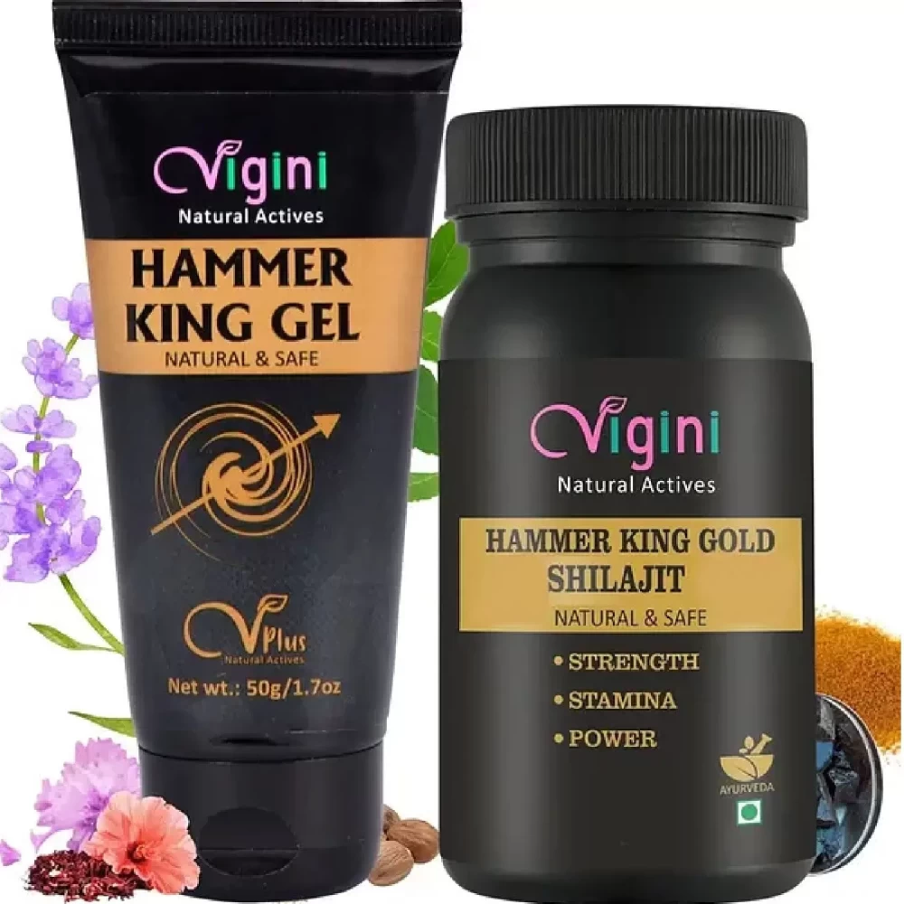 Vigini Hammer King Sexual Lubricant Lube Massage Cream Gel and Shilajit Gold 50ml+30caps
