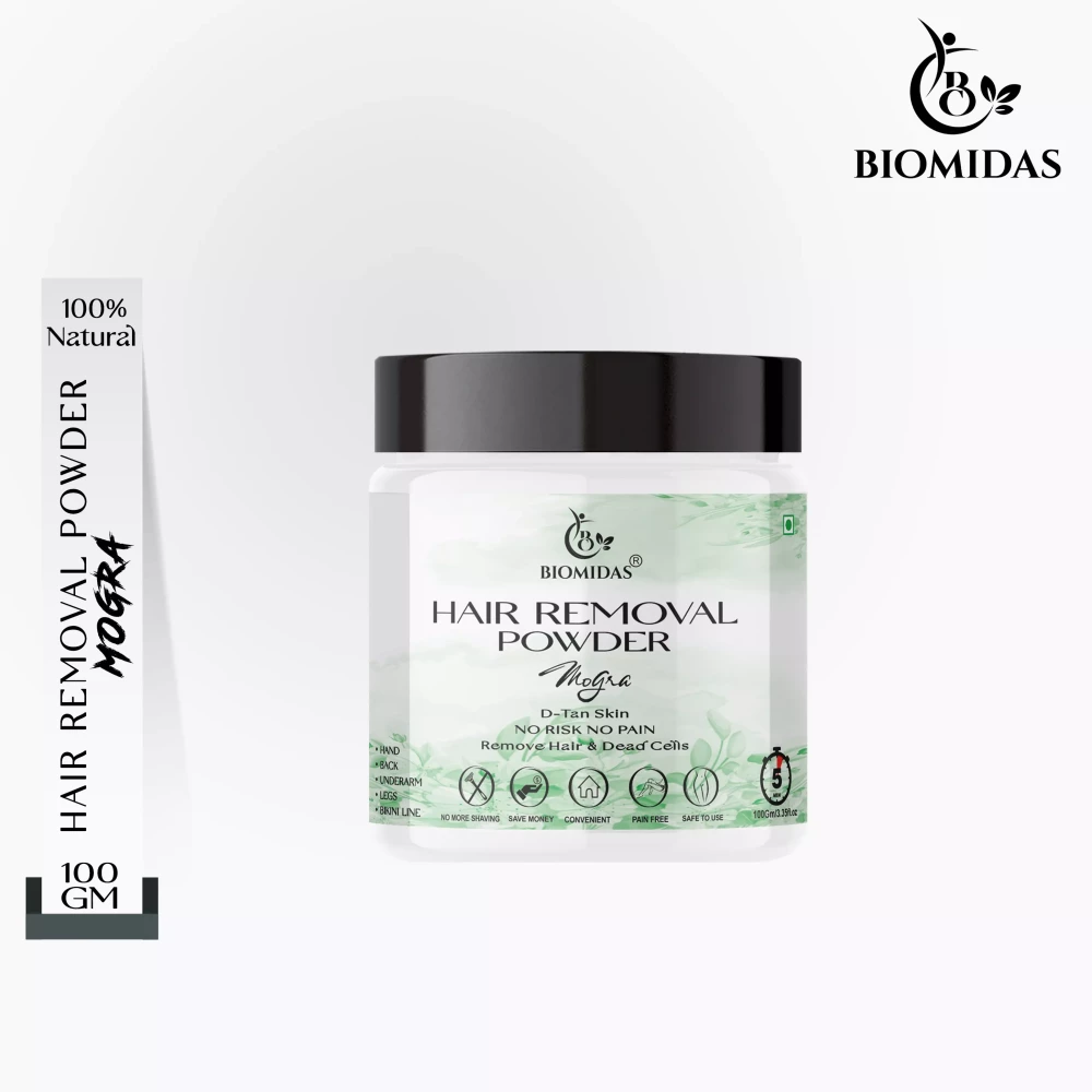 Biomidas Hair Removal Powder Is a Permanent Solution for Removing Unwanted Hair From your Body. This Powder Helps in Removing Hair Without any Pain. This powder helps in removing Hair Gently. Take this powder in a bowl according to your usage and then add a few Milk/water drops and make a thick paste of it and apply on that part of your body from where you want to remove your hair. Wait for 2-3 minutes and let it dry. Then clean it with water and apply moisturising cream on that part.