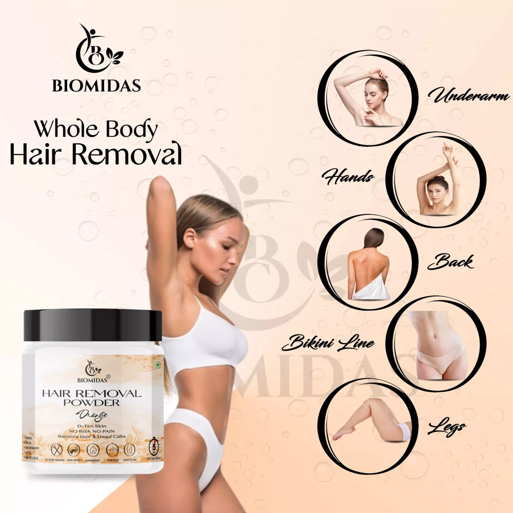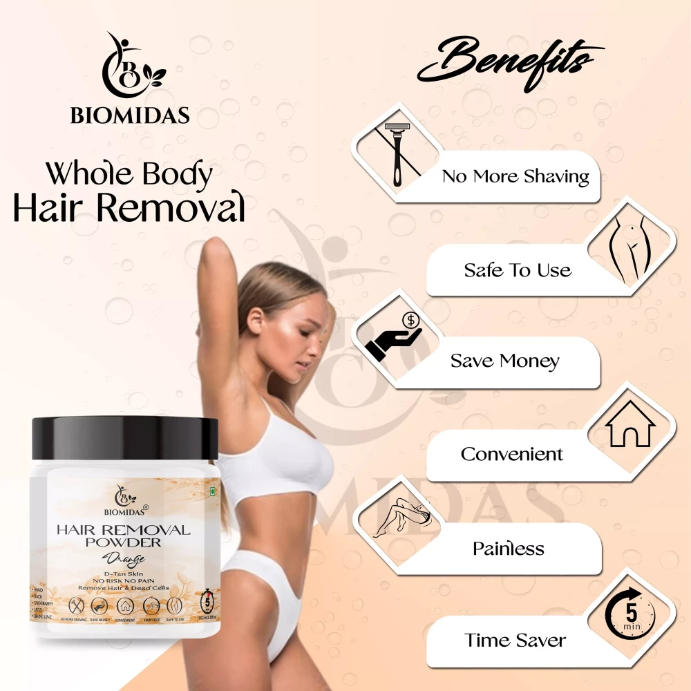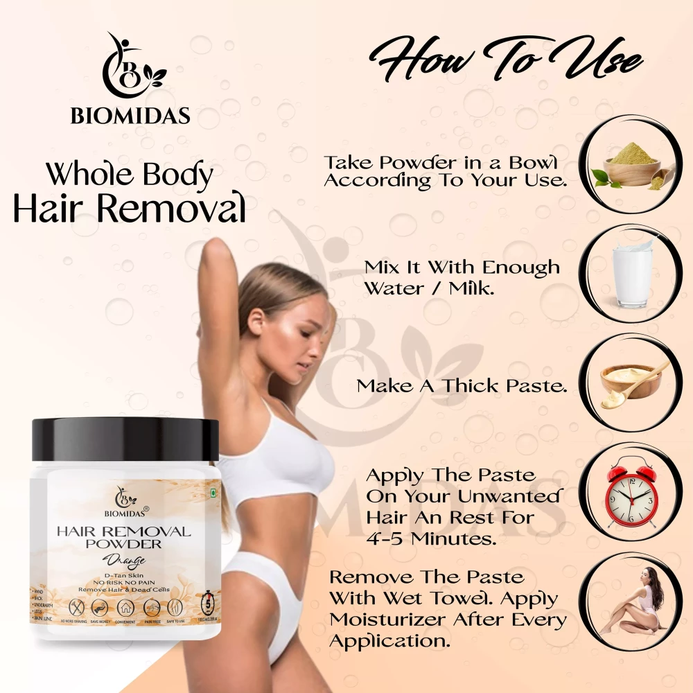 Biomidas Activated Hair Removal Powder Orange Fragrance For Men and Women 300 gms
