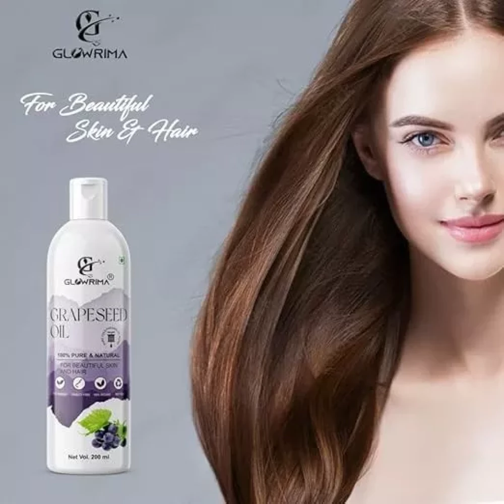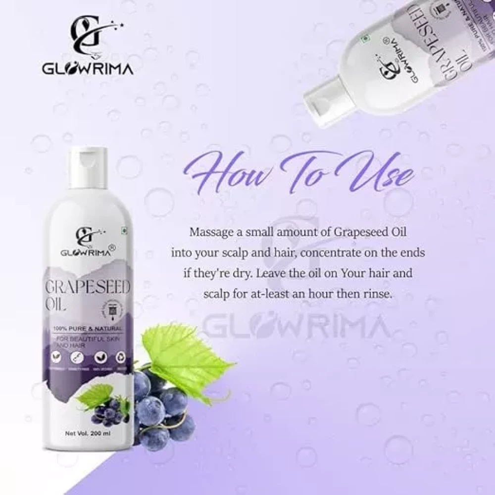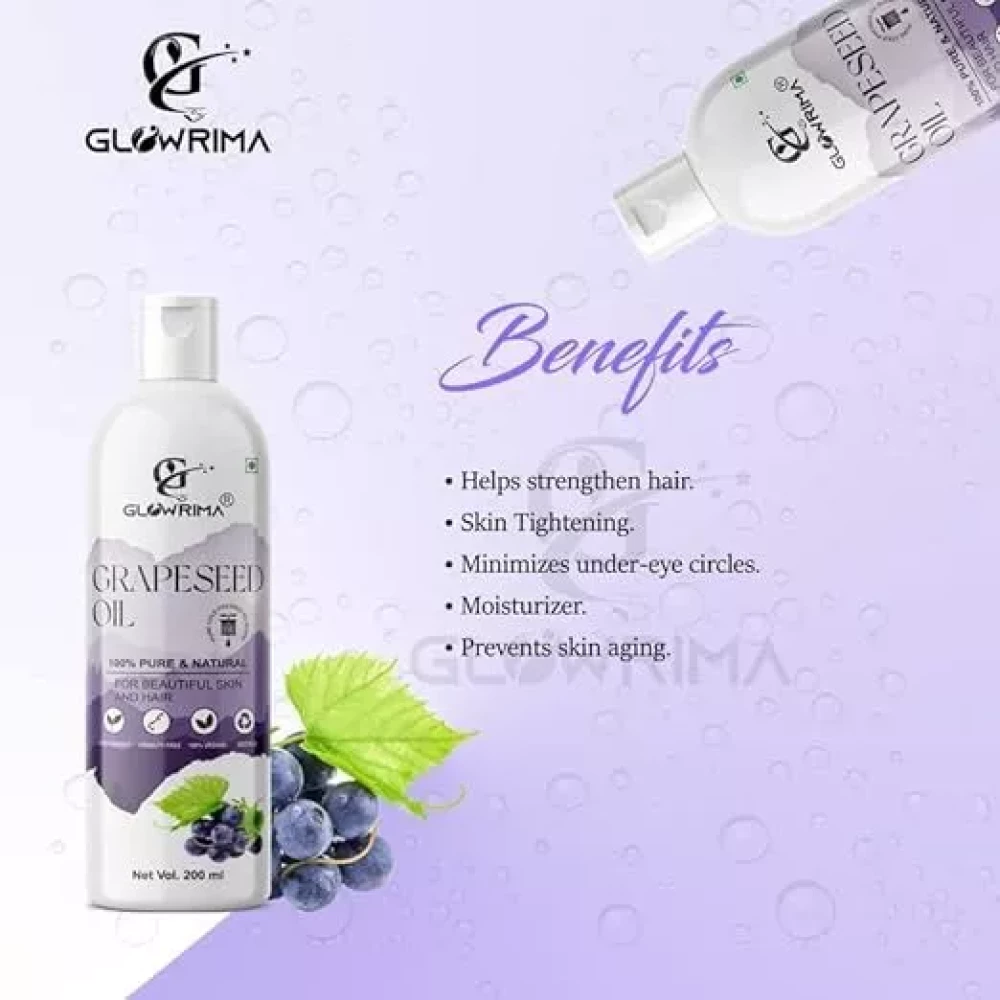 Glowrima 100% Pure and Natural Cold Pressed Grapeseed Oil For Skin Tightening Acne and Hair Growth 200ML