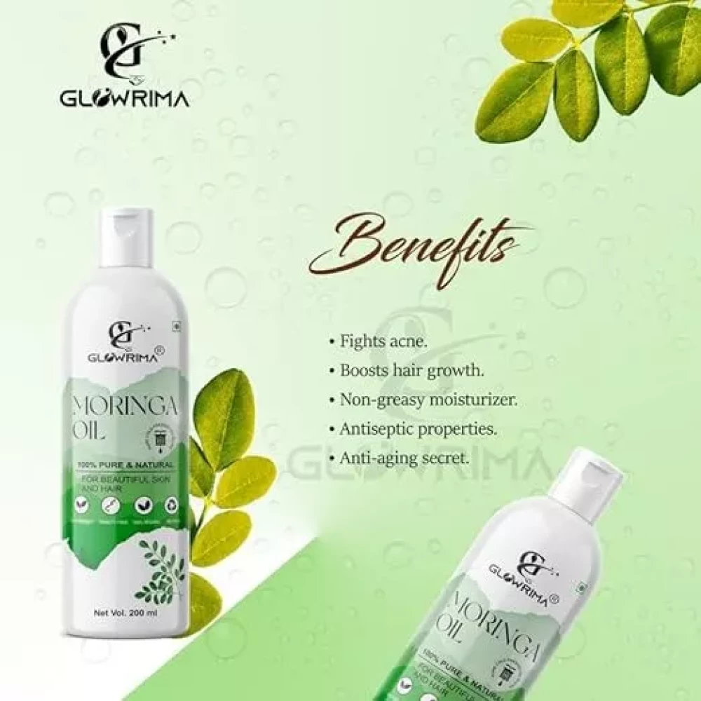Glowrima 100% Pure and Natural Cold Pressed Moringa Oil For Hair Skin 200ML Pack Of 1