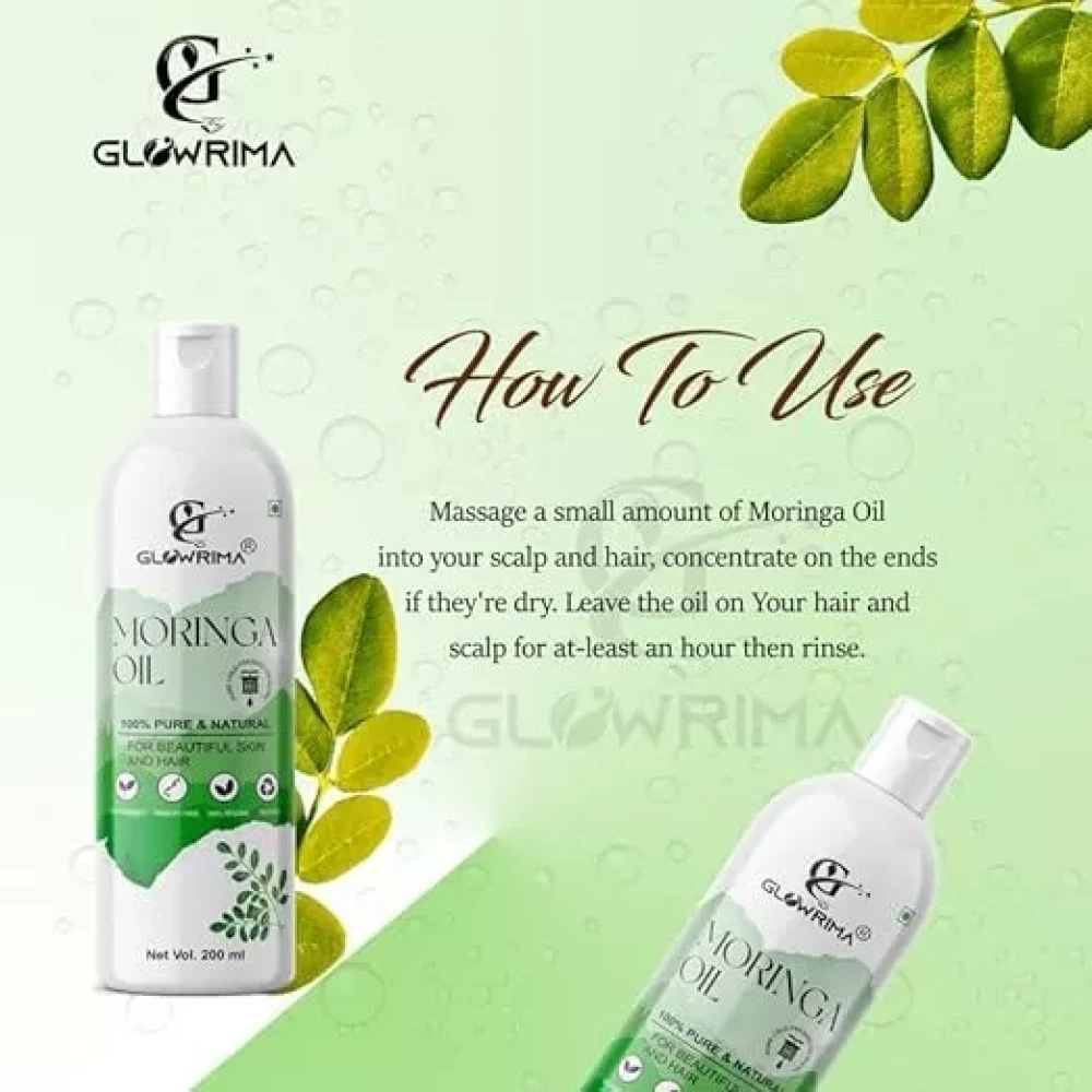 Glowrima Moringa Hair Oil has benefits of Moringa Extract & Moringa oil that is extracted from the seeds of Moringa oleifera, also known as the Drumstick tree. Not only does it act as a powerful hair conditioner it also adds shine your hair, making them look silky smooth.