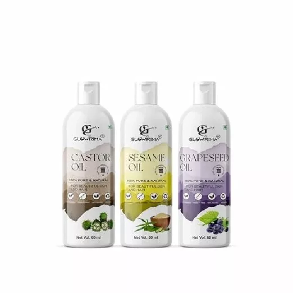 Glowrima 100% Pure Castor Oil and Sesame Oil and Grapeseed Oil 60ML Pack Of 3
