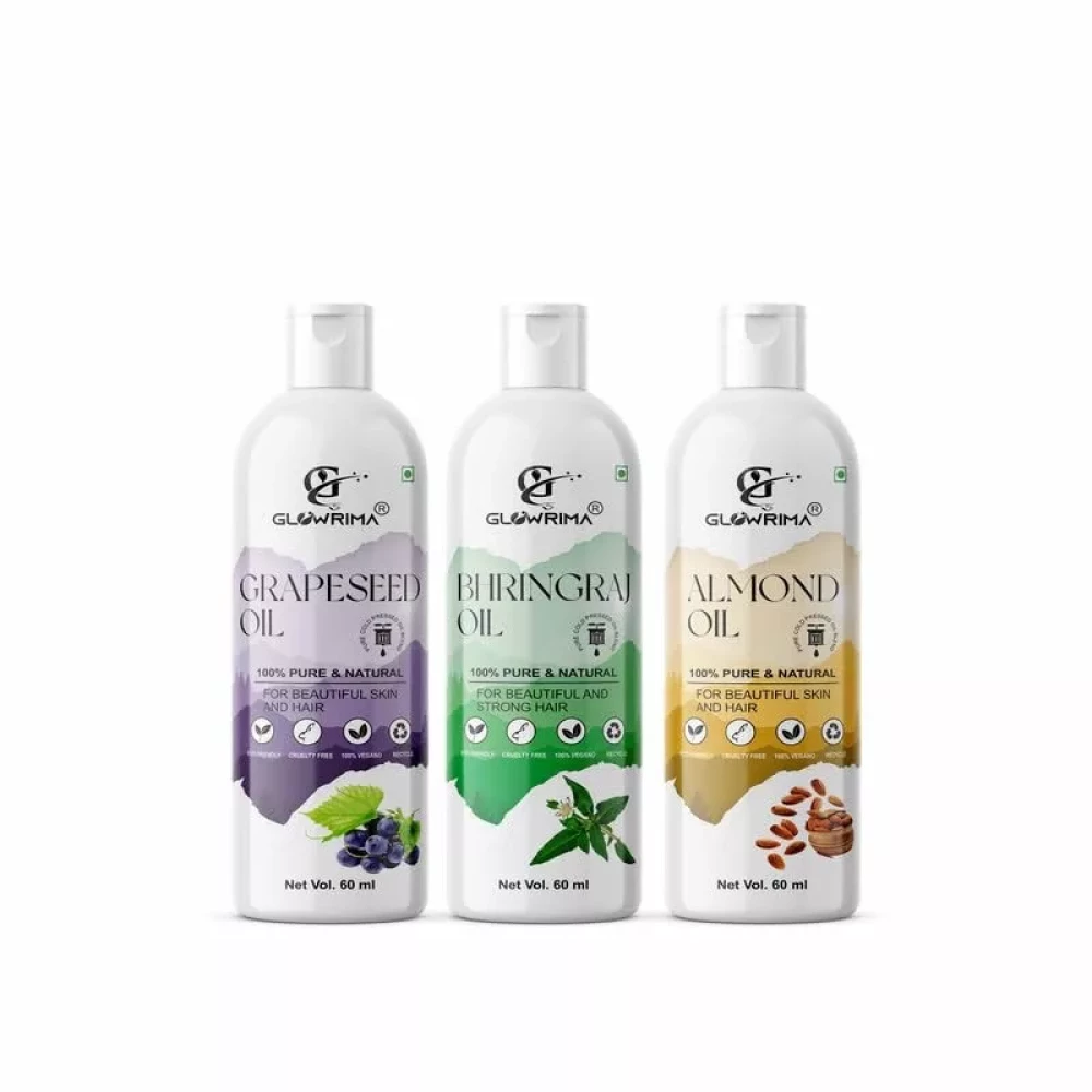 Glowrima 100% Pure Grapeseed Oil and Bhringaj Oil and Almond Oil 60ML Pack Of 3