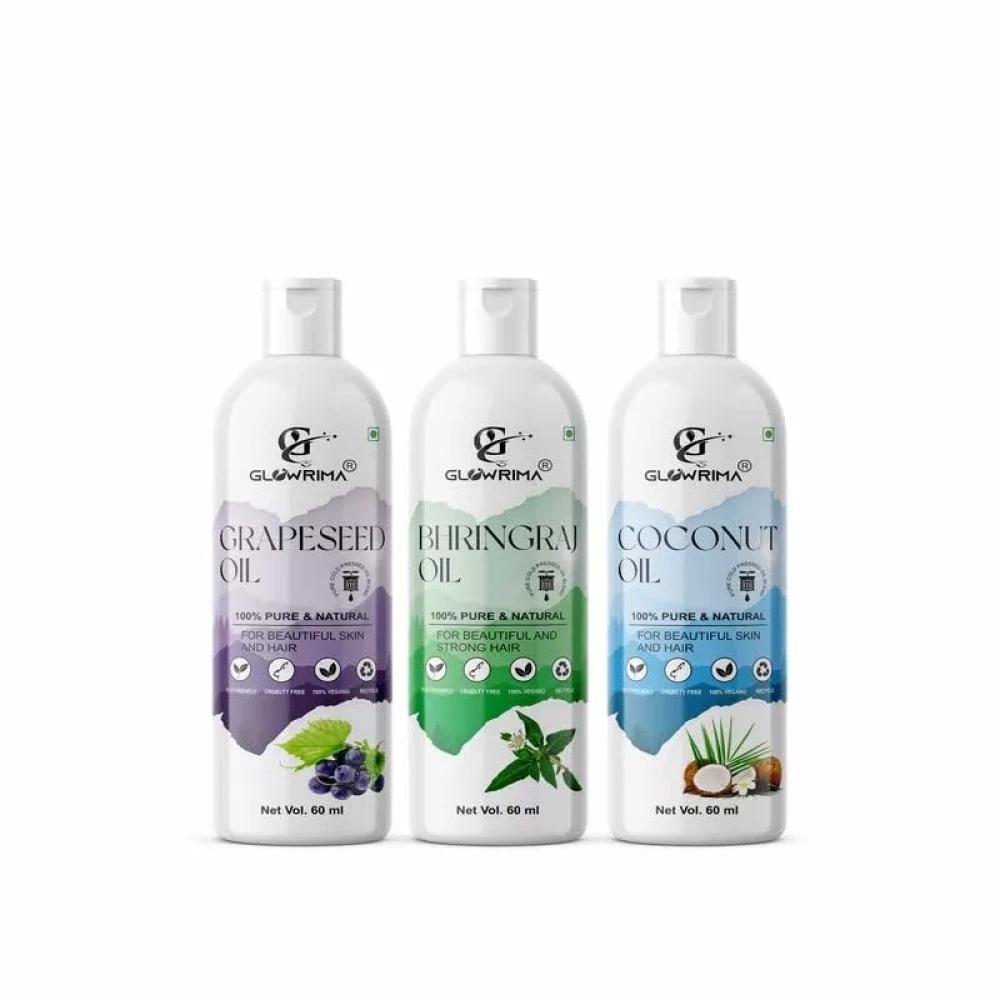 Glowrima 100% Pure Grapeseed Oil and Bhringaj Oil and Coconut Oil 60ML Pack Of 3