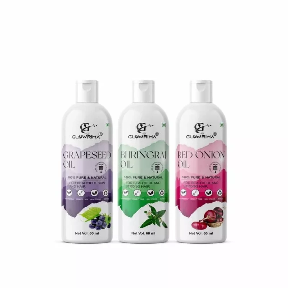 Glowrima 100% Pure Grapeseed Oil and Bhringaj Oil and Red Onion Oil 60ML Pack Of 3