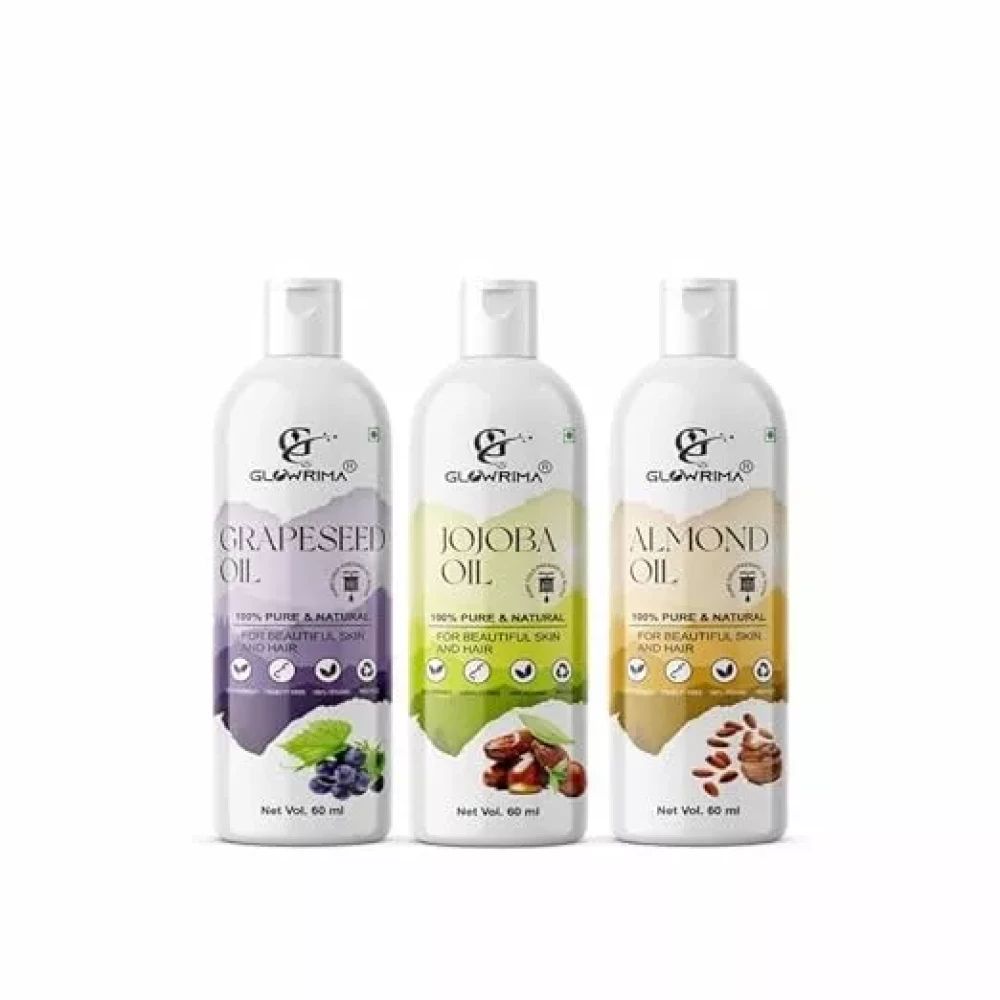 Glowrima 100% Pure Grapeseed Oil and Jojoba Oil and Almond Oil 60ML Pack Of 3
